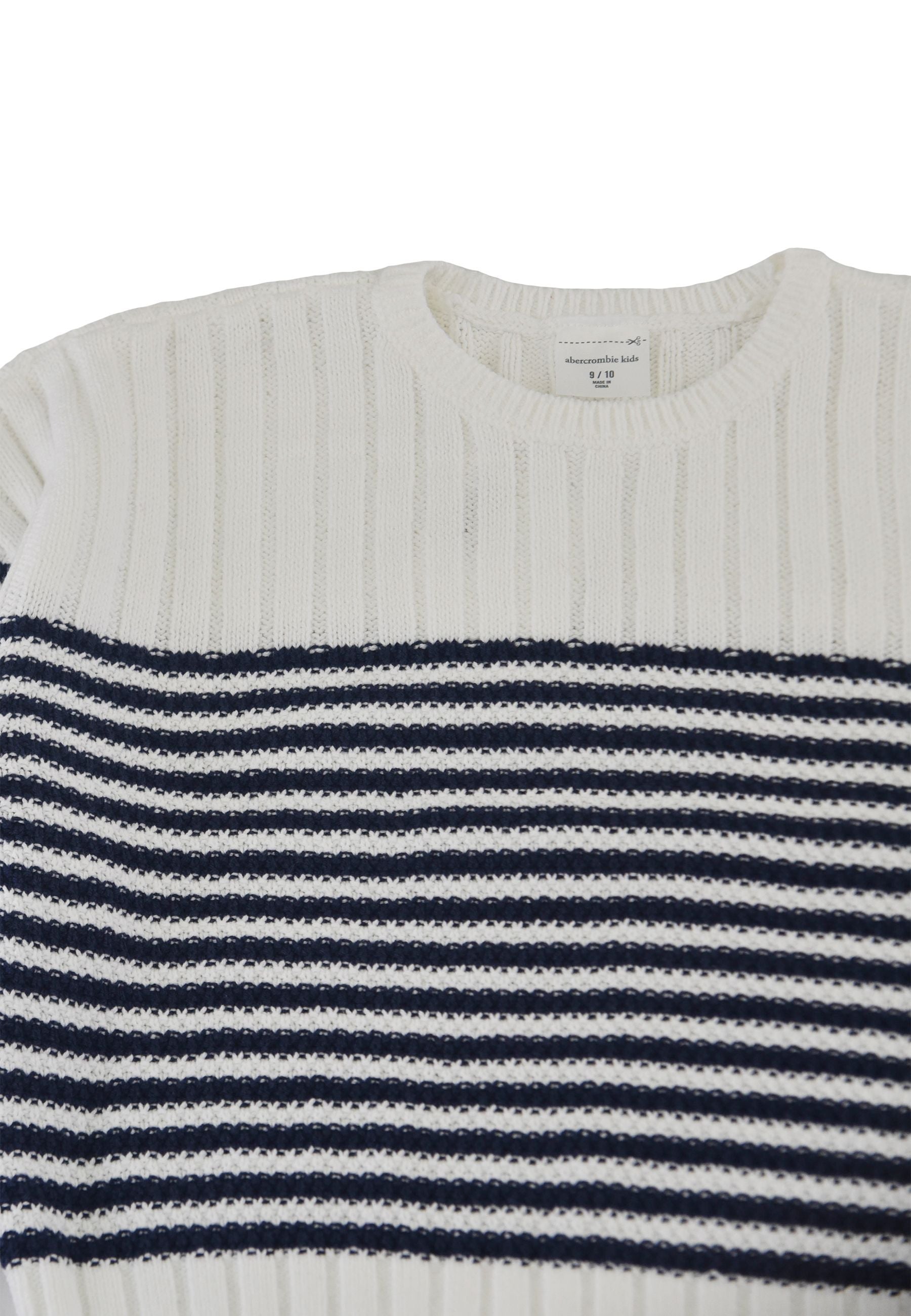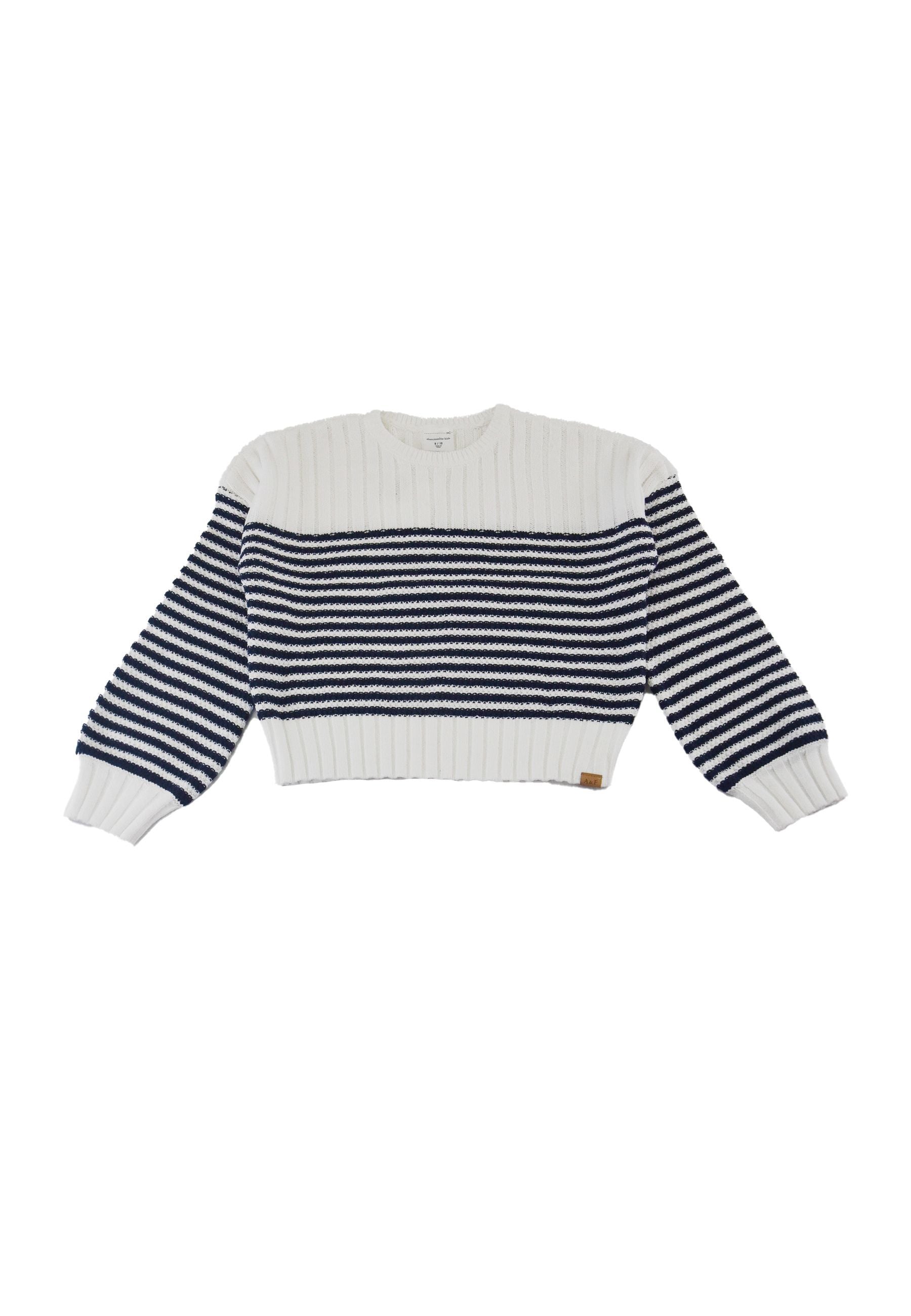 Maglia Abercrombie in morbido misto cotone dal design essenziale e raffinato lavorato a filo trecciato con righe blu e modello cropped che valorizza la silhouette con collo polsi e fondo elasticizzato per una vestibilità confortevole e moderna un capo esclusivo distribuito da Bimbivip realtà solida affidabile e riconosciuta a livello europeo da anni punto di riferimento per famiglie che cercano qualità autenticità e garanzia di marchi prestigiosi con la certezza di un’esperienza d’acquisto sicura soddisfacente e appagante