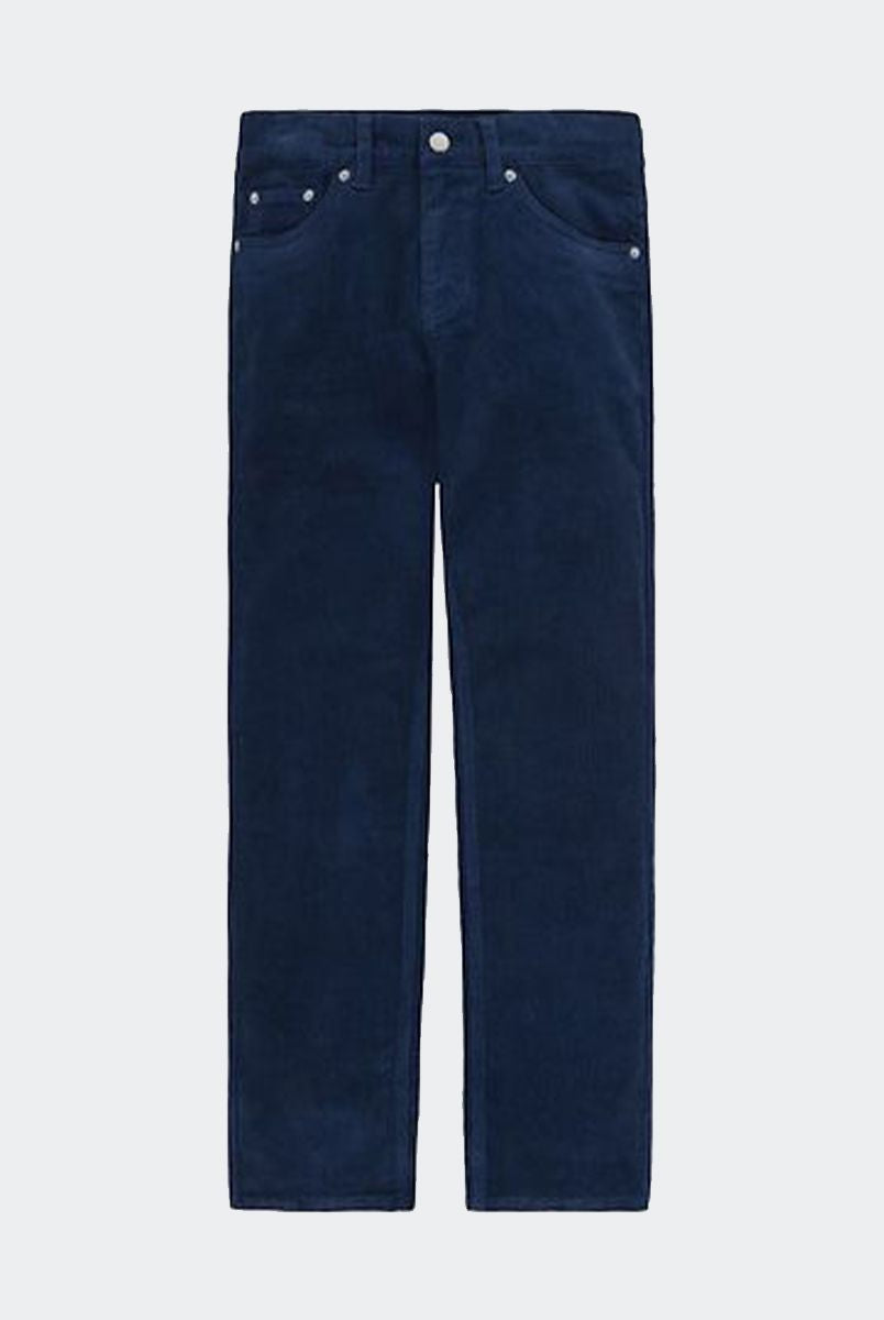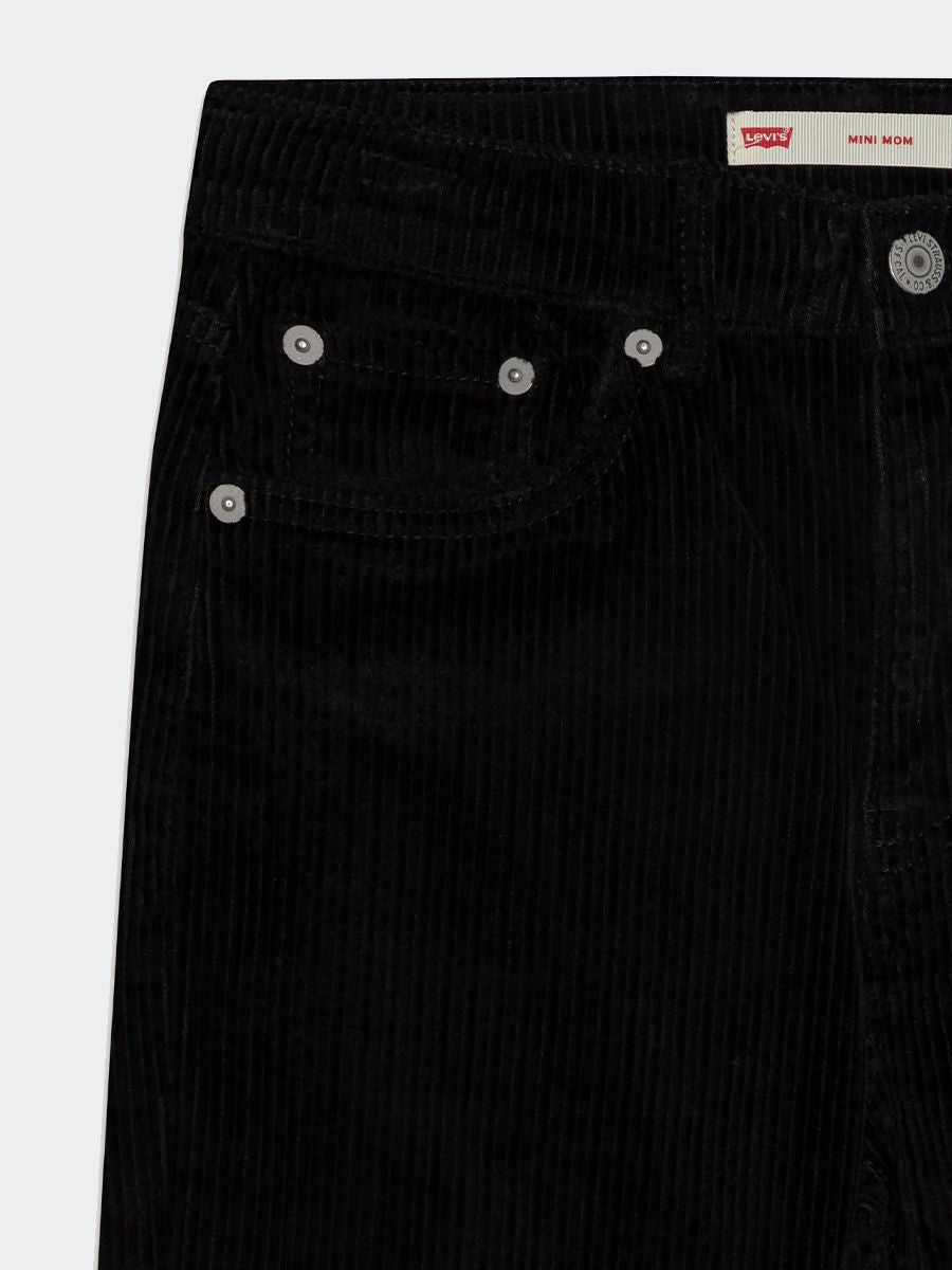 Einfarbige, klassische Mini-Mom-Samthose mit fünf Taschen. Knopf- und verdeckter Reißverschluss. Auf der Rückseite angebrachtes Logo-Etikett.