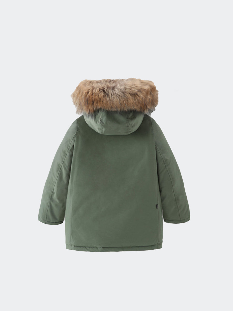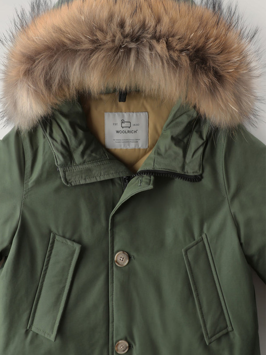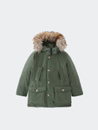Daunenjacke im Parka-Modell aus Ramar-Gewebe mit Teflonbeschichtung. Wasser- und windbeständig. Gefüttert mit Entendaunen und abnehmbarer Fellkapuze. Klettverschluss am Hals und Druckknöpfe, gerade und Leistentaschen vorne