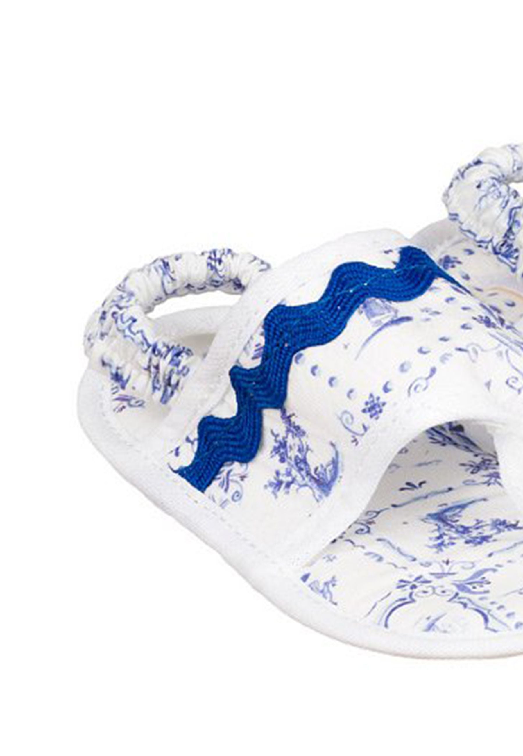 Sandali Graziose infradito in tessuto giungla allover impreziosite da dolci passamanerie.