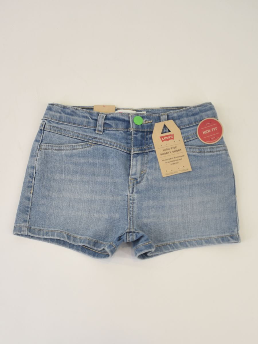 Kurze Modellshorts in heller Waschung mit Vorder- und Gesäßtaschen.