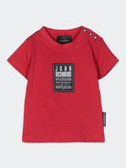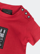 Kurzärmliges T-Shirt mit Rundhalsausschnitt und kontrastierendem Logo-Patch auf der Brust