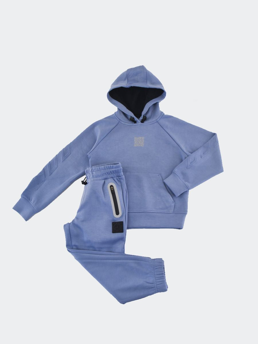 Passender Trainingsanzug mit Kapuzenpullover mit QrCode Reflex-Logo auf der Brust als Relief auf dem Rücken und an den Ärmeln. Kängurutasche unten. Jogginghose mit elastischem, durch Kordelzug verstellbarem Bund, Reflex-Reißverschlusstaschen und elastischem Saum. Silikon-Logo-Patch und QrCode auf der Gesäßtasche. Der Anzug besteht aus Tech-Fleece-Gewebe mit einer Mischung aus Polyester und anderen technischen Materialien, die für Wärmeisolierung sorgen, ohne übermäßiges Gewicht hinzuzufügen. Hält den Körper warm und ermöglicht gleichzeitig eine gute Transpiration, um eine Überhitzung zu vermeiden