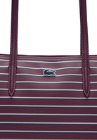 Lacoste Mini Piqué Bag with Striped Pattern, Wine Red and White