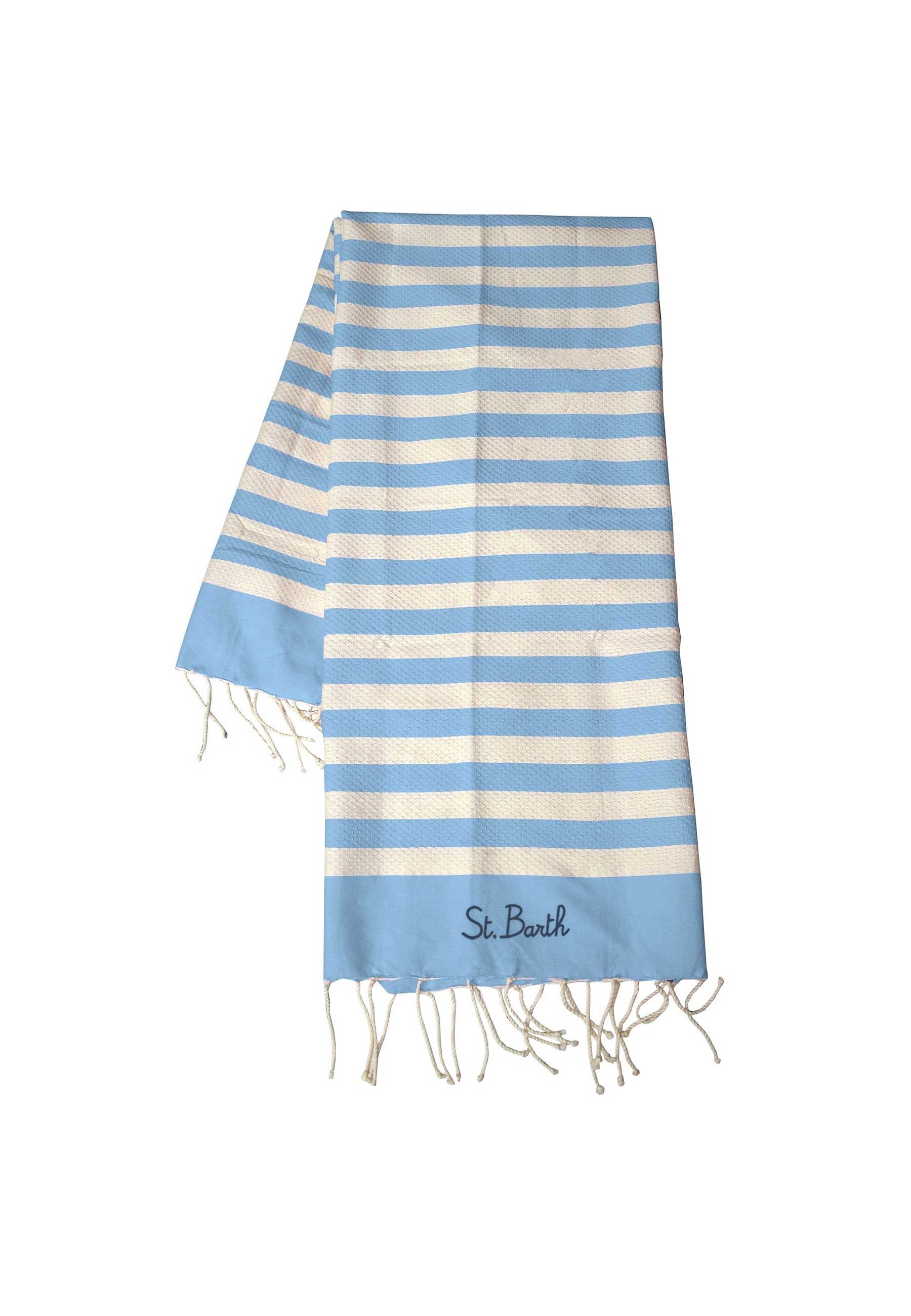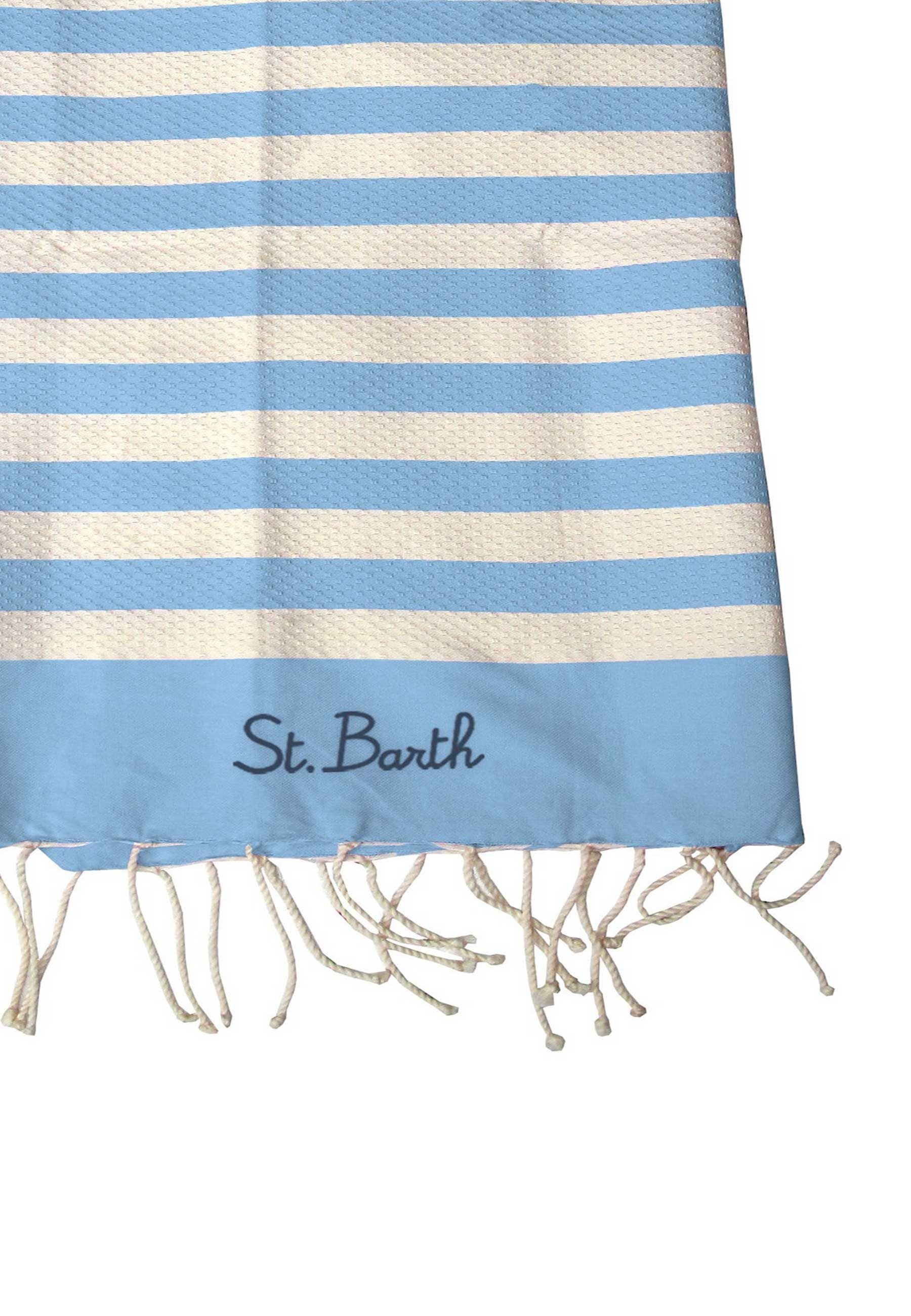Mc2 saint barth Telo Mare Fantasia Foutas Rigato Celeste Beige con Frange