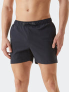 Soft, quick-drying swimsuit with adjustable drawstring waist and concealed zip back pocket. Back logo label