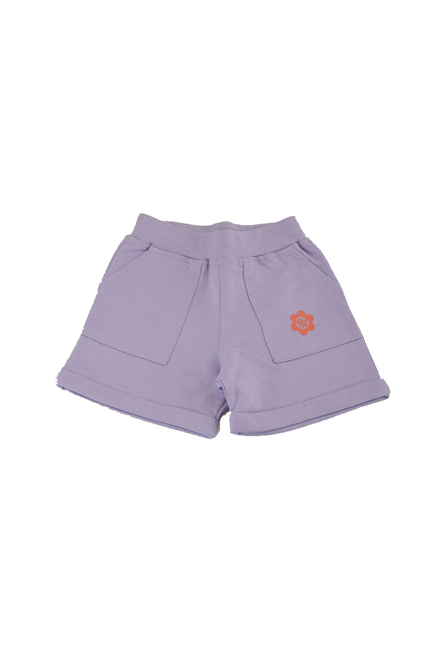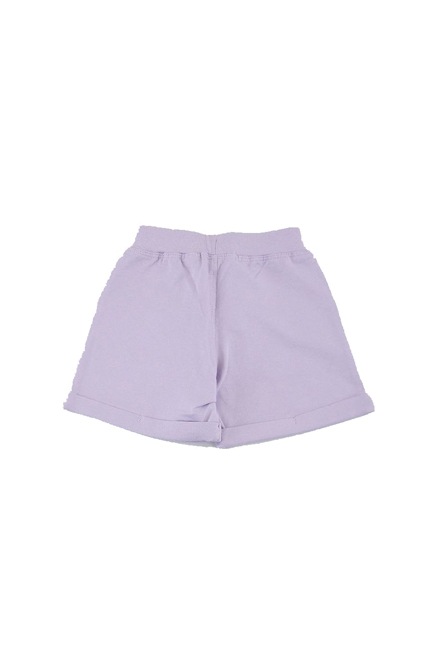 Plain shorts in lightweight fleece with decorative embroidery and raised pocket seams