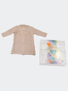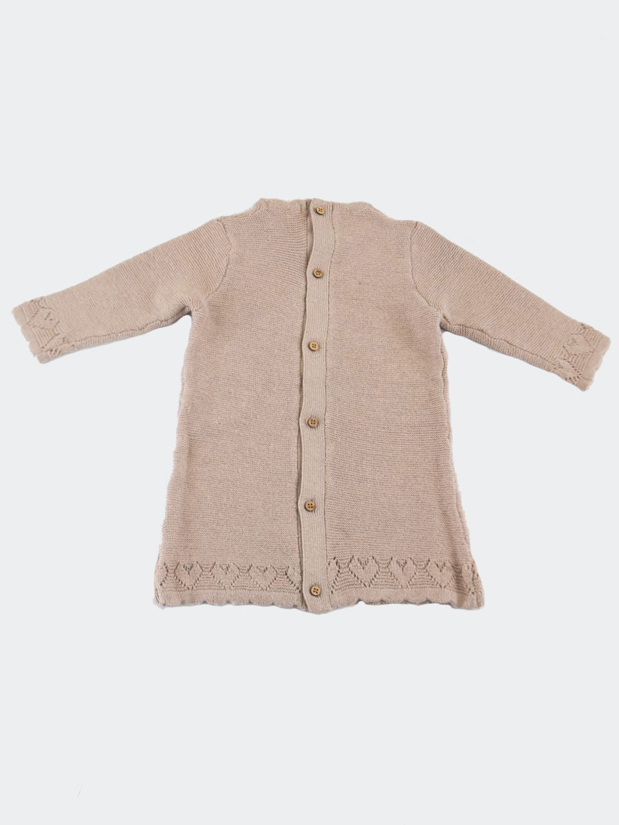 Heart Theme Knit Dress. Back button closure with decoration on the bottom. Drawer gift box included