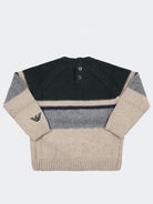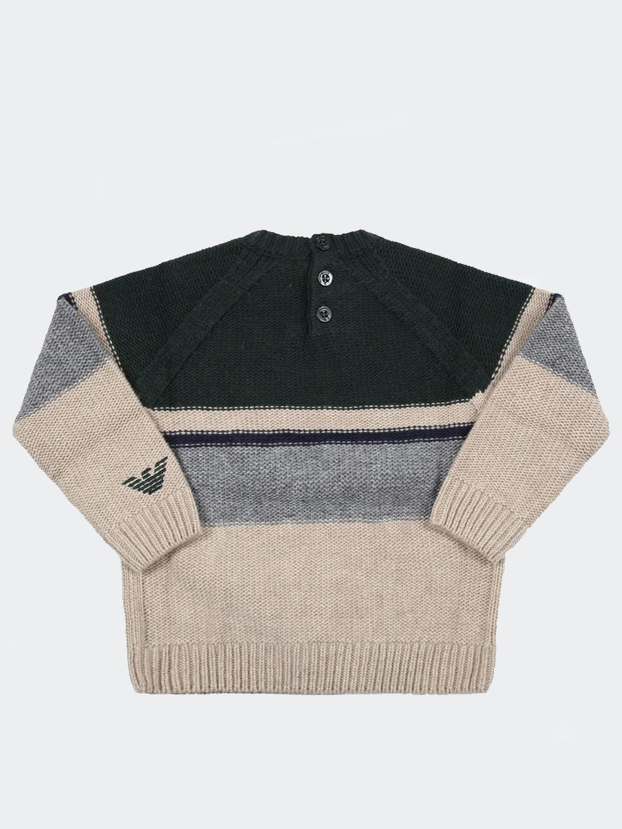 Sweater in wool, viscose and cashmere blend with multicoloured cable knit, round neck and embroidery on the sleeve. Button closure on the back Headpiece preferably used in winter WASH AT 30° IN THE WASHING MACHINE - DO NOT IRON - NOT WASHABLE WITH LIGHT COLOURS - DO NOT USE BLEACH made in ROMANIA composition 45% VISCOSE 25% VIRGIN WOOL 25% POLYAMIDE 5% CASHMERE
