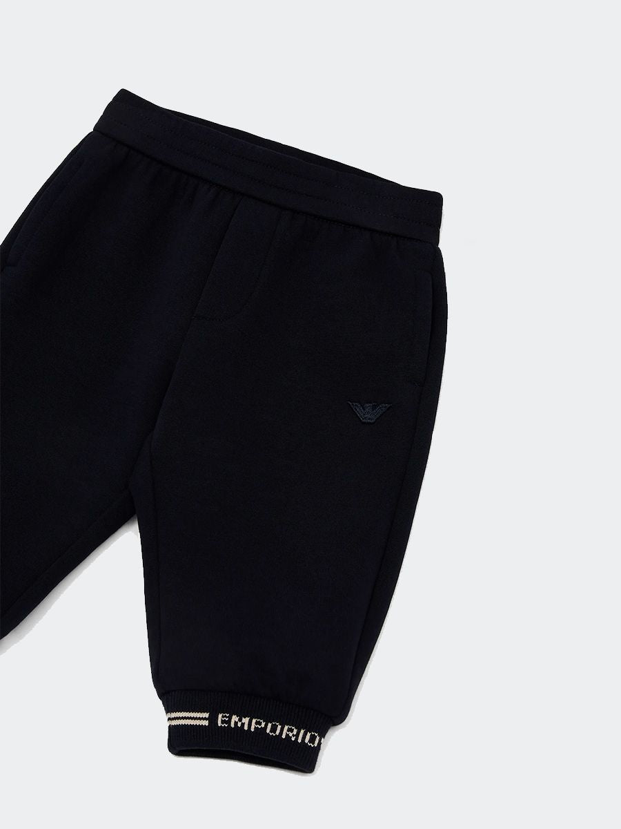 Jersey trousers with elastic waist. Eagle embroidery on elastic bottom and Jacquard Logo