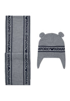 Gift Set Emporio Armani set is presented as a refined combination of style and comfort characterized by a hat with adorable ears and a matching scarf. Each piece of this set is made of a fine blend of virgin wool that provides warmth and softness combined with timeless elegance. Attention to detail is expressed in the jacquard lettering logo that enriches the overall look making the outfit even more distinctive and refined. The plain knit of the hat and scarf is designed to ensure a comfortable and enveloping fit making this set ideal for cold winter days. To ensure maximum durability and maintain the quality of the materials it is advisable to wash the set in the washing machine in cold water avoiding bleach do not use the dryer and iron at low temperature while dry cleaning is not recommended. The e-commerce store Bimbivip stands out for its history and consolidated presence throughout Europe representing a prestigious partner for major brands. The mission of Bimbivip is to guarantee the customer maximum satisfaction by offering a curated and high quality selection that combines fashion and functionality. The Emporio Armani proposal inside this store is a clear example of how elegance can meet comfort, giving adults and children a unique and rewarding shopping experience.