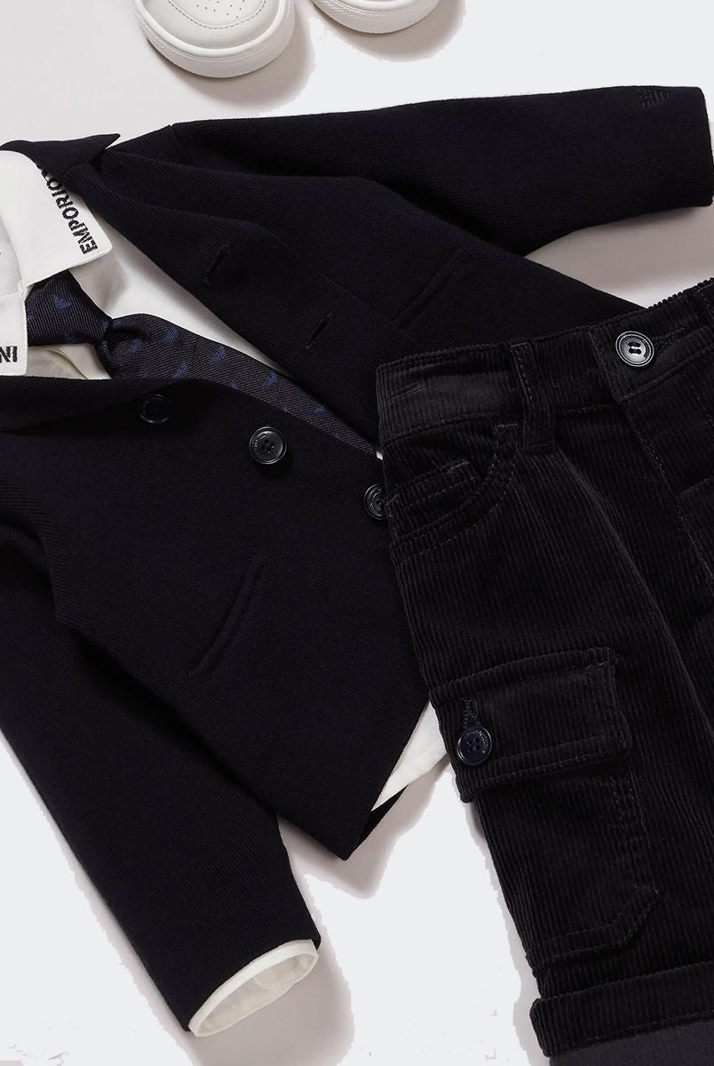 The brand offers a wide range of products, including clothing, shoes and accessories. Armani Junior collections are characterized by clean lines, sophisticated colors and high-quality fabrics, with particular attention to detail. The garments often feature metal details, such as buttons or zippers, and are made of fine fabrics such as silk and cashmere. Armani Junior is aimed at a demanding and sophisticated audience, who seek elegant and high-quality clothing for their children. The brand aims to offer children a refined and fashionable style, but also comfortable and functional, to ensure they look impeccable on every occasion.