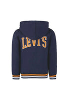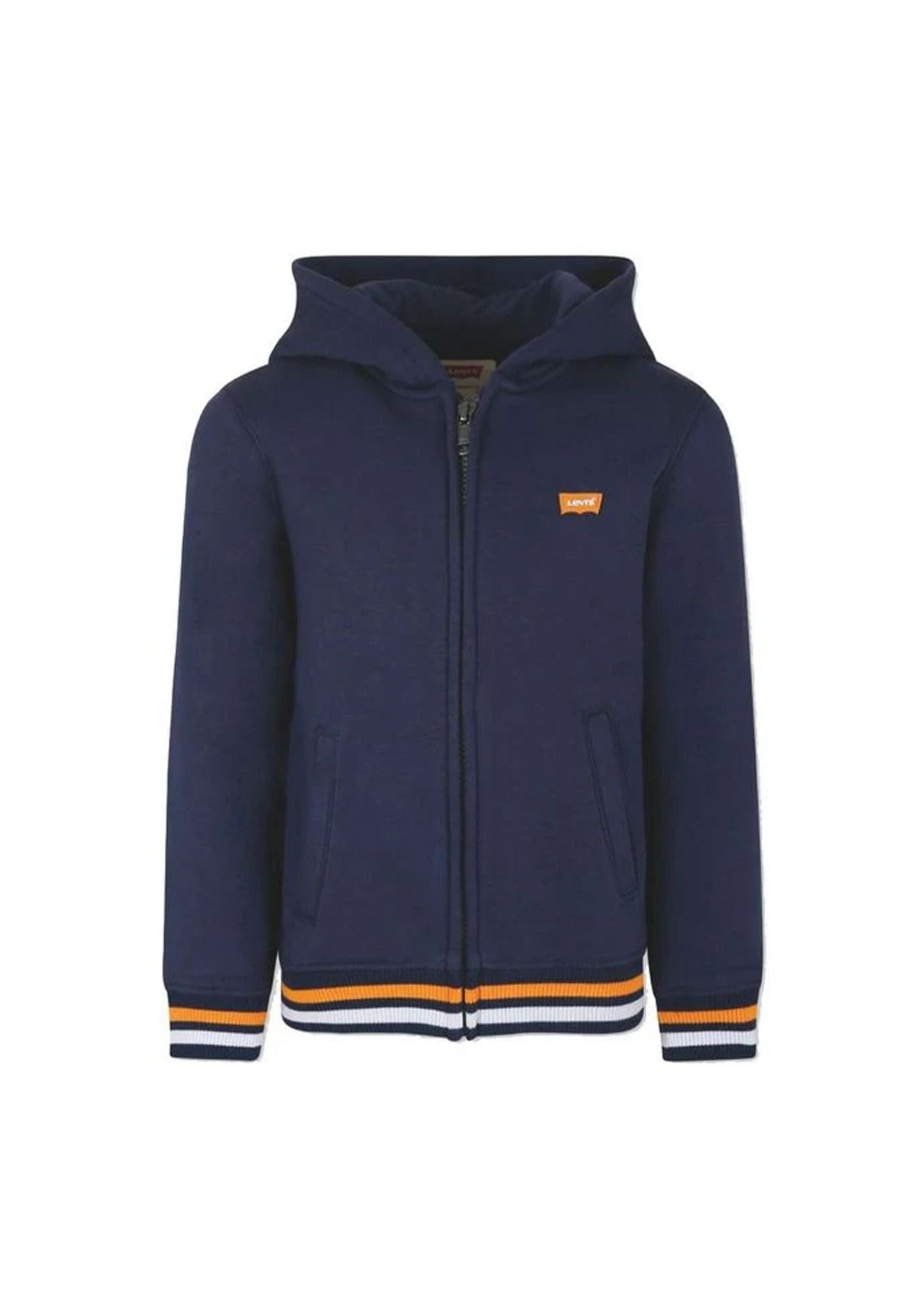Levi's kids' hoodie is a garment that embodies elegance and practicality, combining the comfort of a soft and elastic fabric with a timeless design. Made from an organic cotton blend, the sweatshirt has a jersey texture that makes it pleasant to the touch and easy to wear. The model stands out for its front zip, classic collar and long sleeves, while the ribbed cuffs and hem add a touch of sporty and functional style. The two side welt pockets and the small logo applied on the front give an additional distinctive accent, while another logo is visible on the back, confirming the authenticity of the brand. The sweatshirt is lined with a soft fleece padding that offers warmth and comfort in every season. The straight cut and simple hem make the versatile garment easy to combine with any casual outfit. This product is part of the Conscious line that guarantees respect for the environment thanks to the use of organic cotton grown without pesticides or artificial fertilizers and with methods that protect biodiversity, improve soil quality and reduce water consumption. To keep the garment in perfect condition over time it is essential to follow some simple instructions: avoid dry cleaning and the use of the dryer as they could damage the fabric and compromise the life of the sweatshirt. It is also advisable to pay attention to the detergent by choosing one specifically for colored garments without bleaches that could discolor the fabric. The maximum ironing temperature must not exceed 110 ° C and the use of steam is not recommended as it could cause irreversible damage. Bimbivip, a prestigious partner of brands such as Levis, stands out in the European panorama for its excellence in customer care and the selection of the best products. With its historic e-commerce and numerous stores throughout Europe, Bimbivip is synonymous with satisfaction by offering its customers a unique and reliable shopping experience. If you want a quality garment that respects the environment and lasts over time, this sweatshirt is the ideal choice for every child