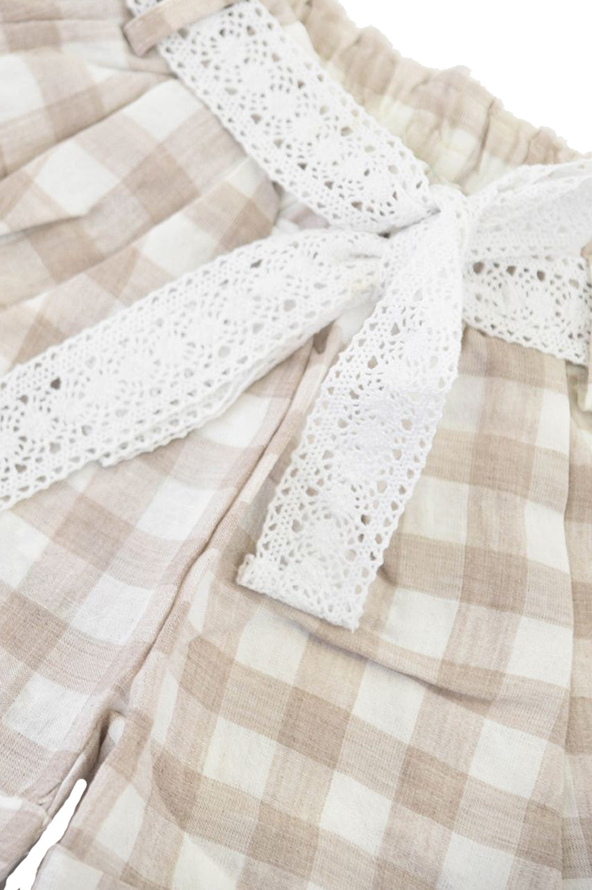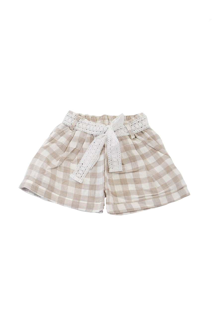 Checked linen shorts with adjustable waist