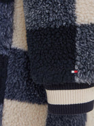Classic double-breasted checked Teddy coat. Side welt pockets with ribbed knit cuffs. Back vent and Tommy Hilfiger flag embroidered on the chest.