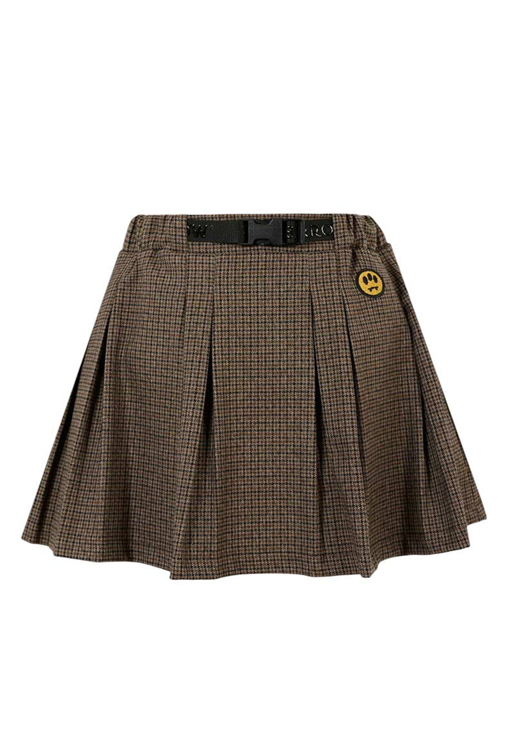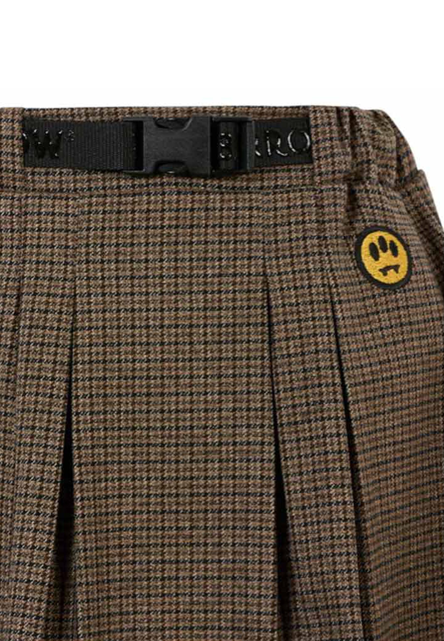 Gonna marrone in pied de poule dal design raffinato ed esclusivo realizzata in 100% cotone di alta qualità vita elasticizzata che assicura comfort e vestibilità impeccabile chiusura frontale pratica e moderna arricchita dall’iconico Smile giallo ricamato che dona un tocco distintivo e contemporaneo completata da portachiavi logato giallo elemento originale e di carattere un capo che unisce stile ricercato e funzionalità distribuito in esclusiva da Bimbivip partner storico e affidabile nel panorama europeo punto di riferimento per famiglie che ricercano qualità autenticità e prestigio per un acquisto sicuro appagante e garantito