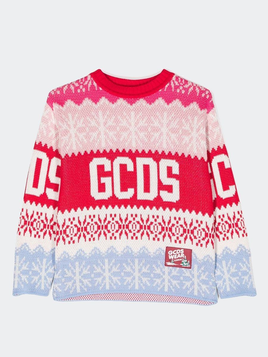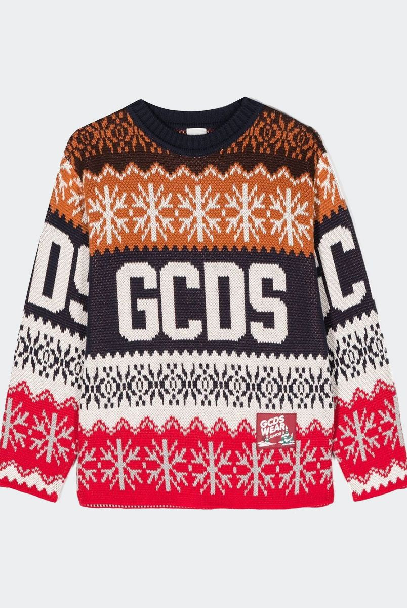 Christmas sweater with round neck, long sleeves, embroidered logo and snowflakes