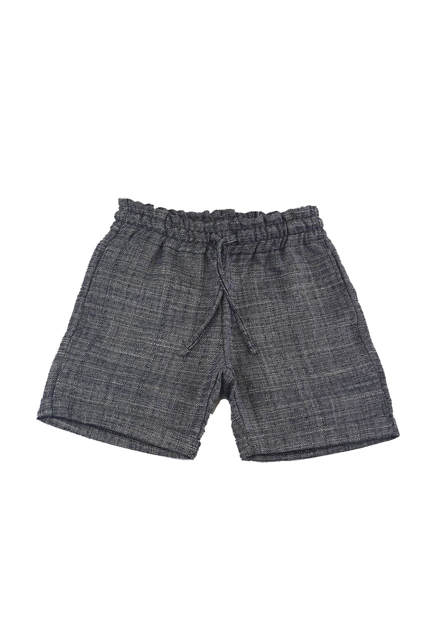 Bermuda shorts in salt and pepper patterned fabric with side pockets and drawstring waist