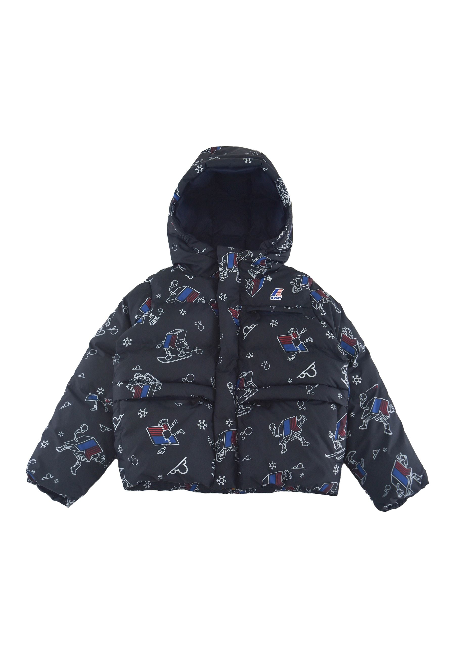 K-way Le Vrai 4.0 Aurele Down Jacket with Blue Logo Pattern