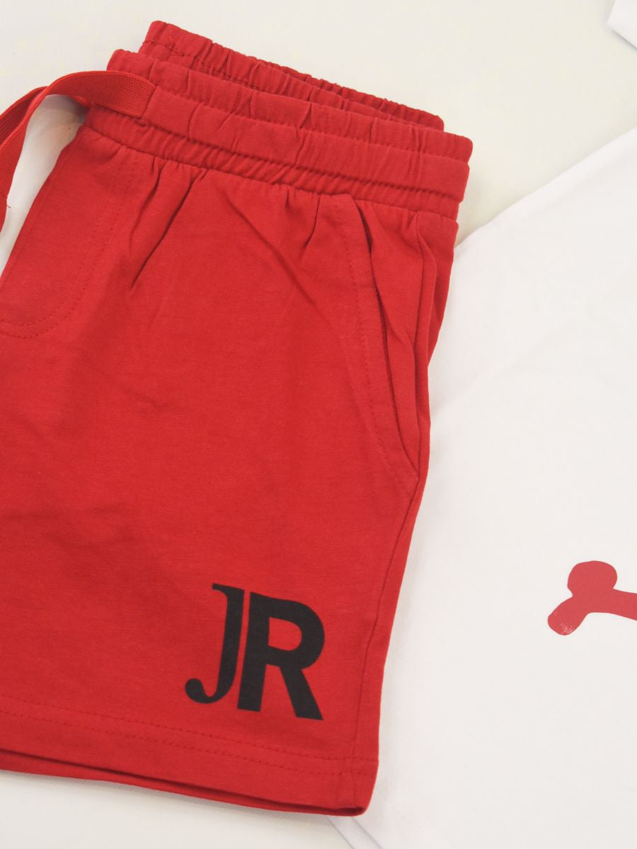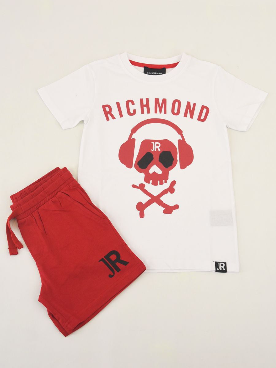 Completo Sportivo in morbido cotone il set comprende Girocollo manica corta con stampa Logo frontale iconico a tema Musicale abbinato con bermuda stampato con girovita elasticizzato e tasche laterali