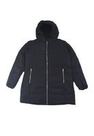Down jacket featuring an innovative design that combines black and pink in an elegant taffeta effect. On one side it has a smooth and minimalist black finish while on the other it is enriched with contrasting pink stitching and details. Its padding and