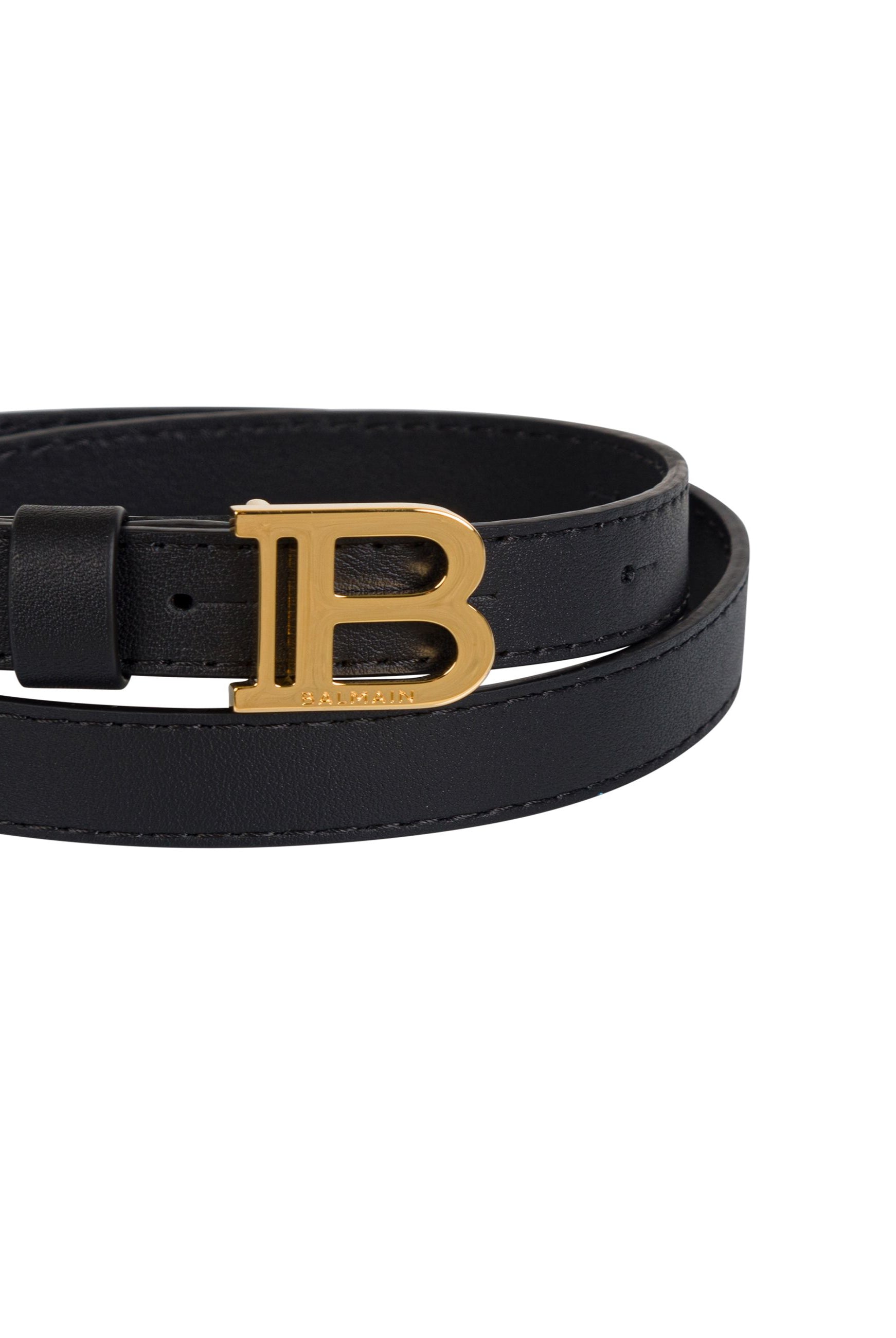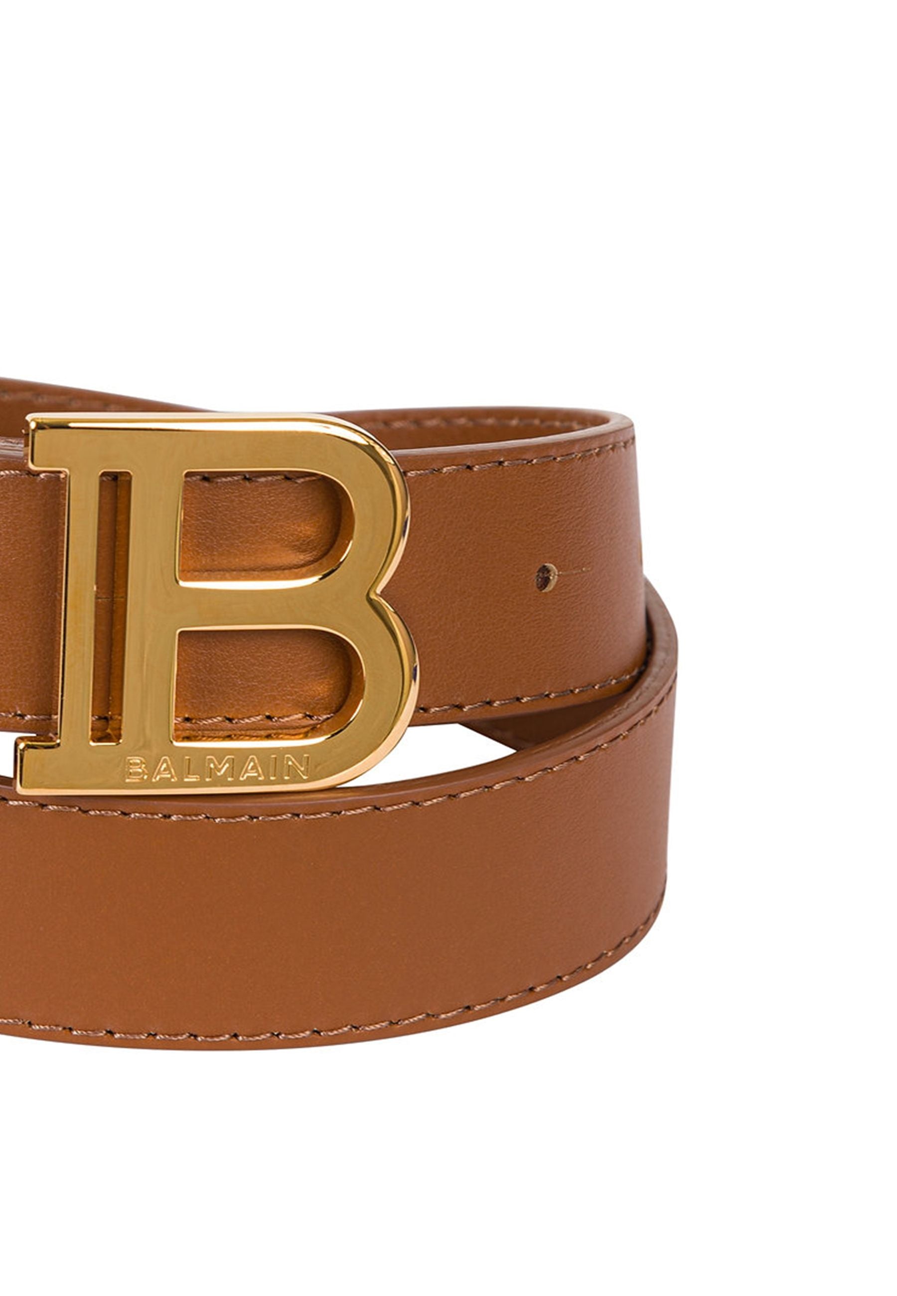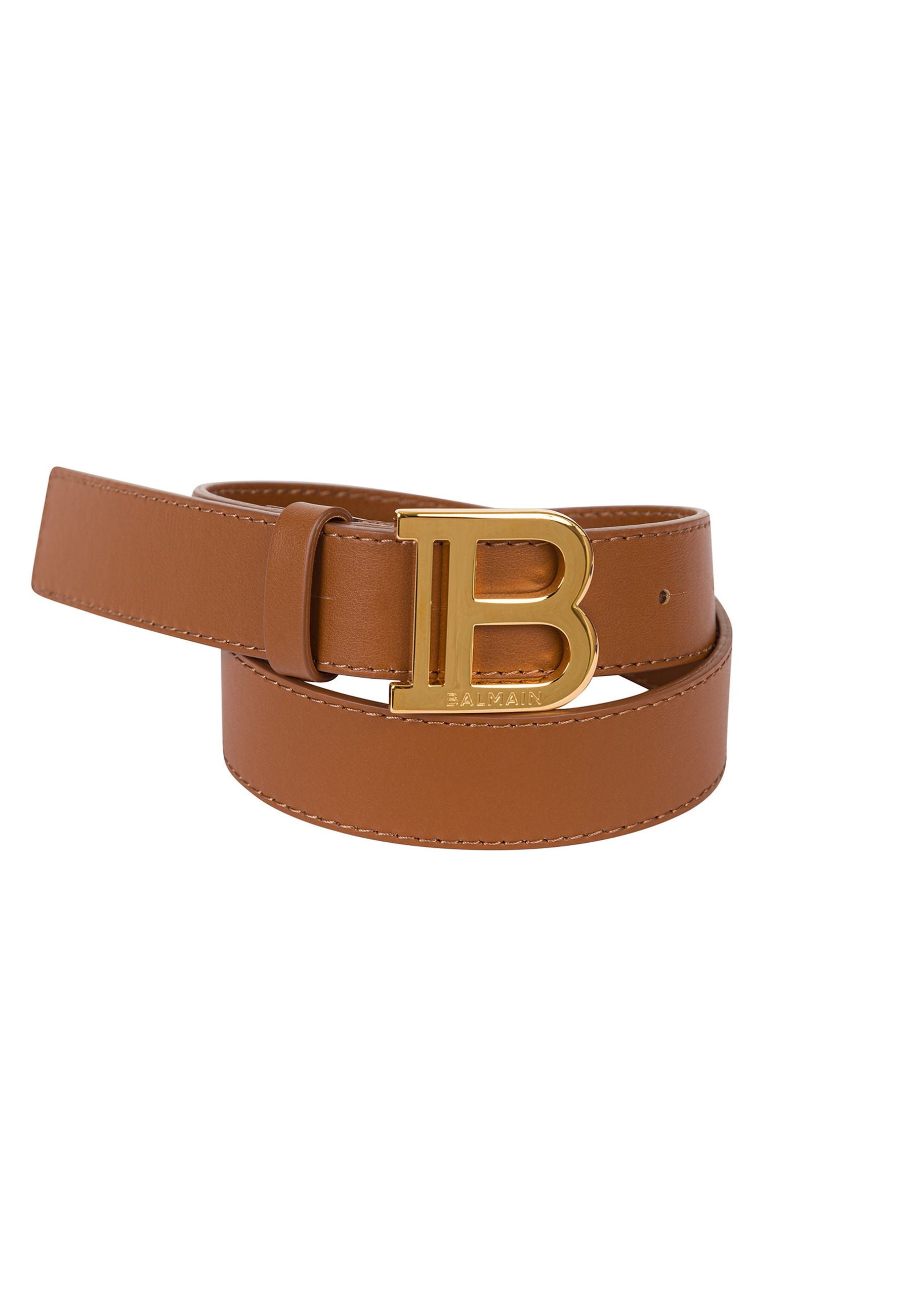 Balmain Cintura Marrone Chiaro in Pelle Pregiata con Fibbia Oro