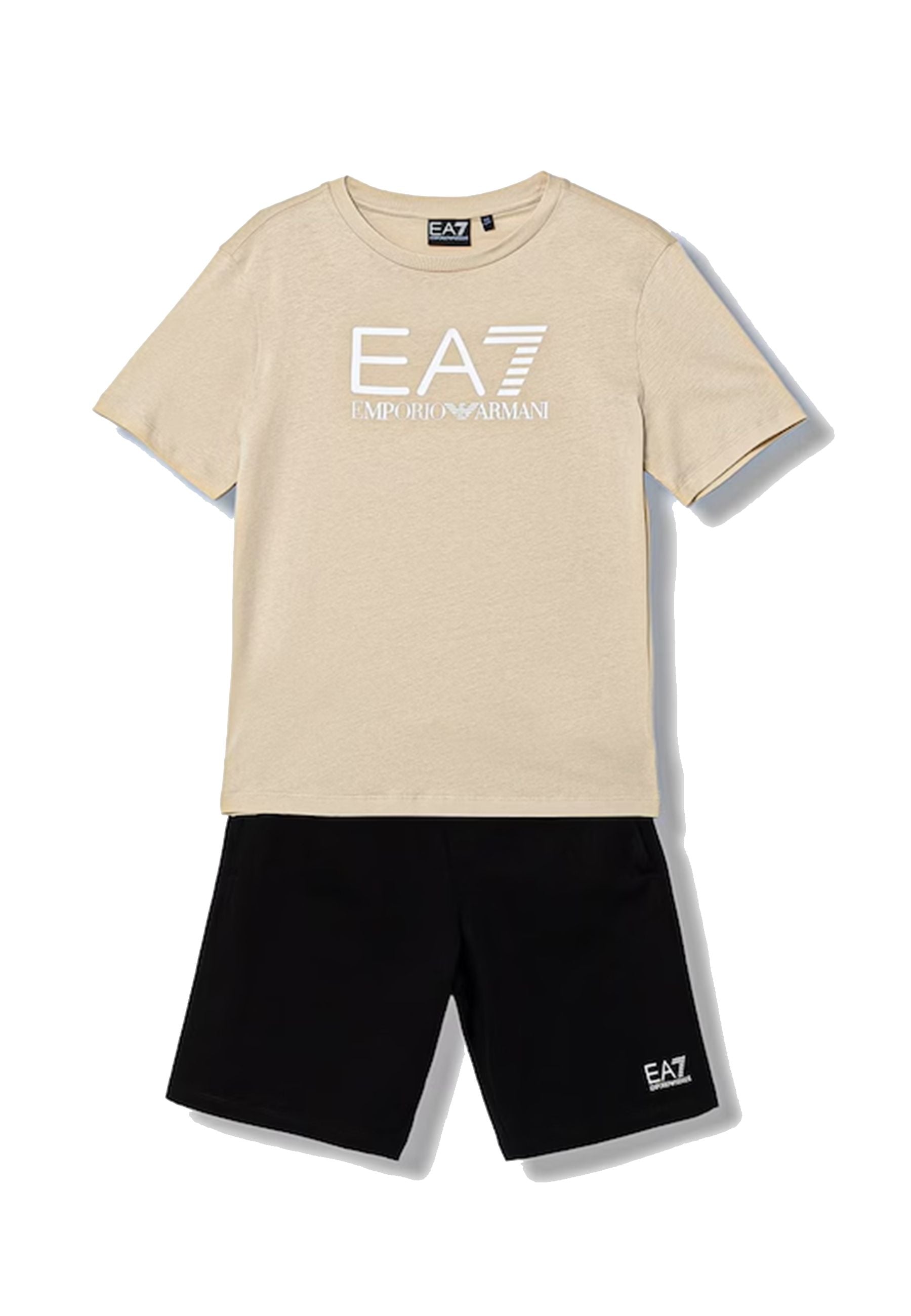 Completo Sportivo Set EA7 Emporio Armani per bambini dal design curato moderno e distintivo realizzato in maglia fine elasticizzata morbida e flessibile con elevato contenuto di cotone naturale traspirante delicato sulla pelle e ideale per un comfort quotidiano prolungato vestibilità dal taglio dritto equilibrata e versatile che favorisce libertà di movimento spontanea e sicura maglia con classico girocollo rotondo pulito e intramontabile manica corta pratica fresca e dinamica arricchita da motivo stampato iconico riconoscibile e di forte impatto estetico pantaloncini leggermente aderenti sui fianchi con linea affusolata ma comoda gamba dritta a lunghezza intera dallo stile ordinato e contemporaneo vita con bordo elastico stabile e confortevole dotata di regolazione interna con cordini funzionali pensati per garantire stabilità durante ogni attività due tasche laterali a taglio pratiche discrete e utili per piccoli oggetti essenziali.Prodotto esclusivo distribuito da Bimbivip realtà storica affidabile e autorevole nel panorama europeo ecommerce e retail punto di riferimento consolidato per famiglie attente alla qualità autenticità e valore dei marchi prestigiosi Bimbivip offre esperienza di acquisto sicura trasparente soddisfacente con selezione originale servizio curato e garanzia di eccellenza dedicata ai più piccoli e alla serenità dei genitori