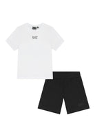 Completo Sportivo Set EA7 Emporio Armani per bambini dal design curato moderno e distintivo realizzato in maglia fine elasticizzata morbida e flessibile con elevato contenuto di cotone naturale traspirante delicato sulla pelle e ideale per un comfort quotidiano prolungato vestibilità dal taglio dritto equilibrata e versatile che favorisce libertà di movimento spontanea e sicura maglia con classico girocollo rotondo pulito e intramontabile manica corta pratica fresca e dinamica arricchita da motivo stampato iconico riconoscibile e di forte impatto estetico pantaloncini leggermente aderenti sui fianchi con linea affusolata ma comoda gamba dritta a lunghezza intera dallo stile ordinato e contemporaneo vita con bordo elastico stabile e confortevole dotata di regolazione interna con cordini funzionali pensati per garantire stabilità durante ogni attività due tasche laterali a taglio pratiche discrete e utili per piccoli oggetti essenziali.Prodotto esclusivo distribuito da Bimbivip realtà storica affidabile e autorevole nel panorama europeo ecommerce e retail punto di riferimento consolidato per famiglie attente alla qualità autenticità e valore dei marchi prestigiosi Bimbivip offre esperienza di acquisto sicura trasparente soddisfacente con selezione originale servizio curato e garanzia di eccellenza dedicata ai più piccoli e alla serenità dei genitori