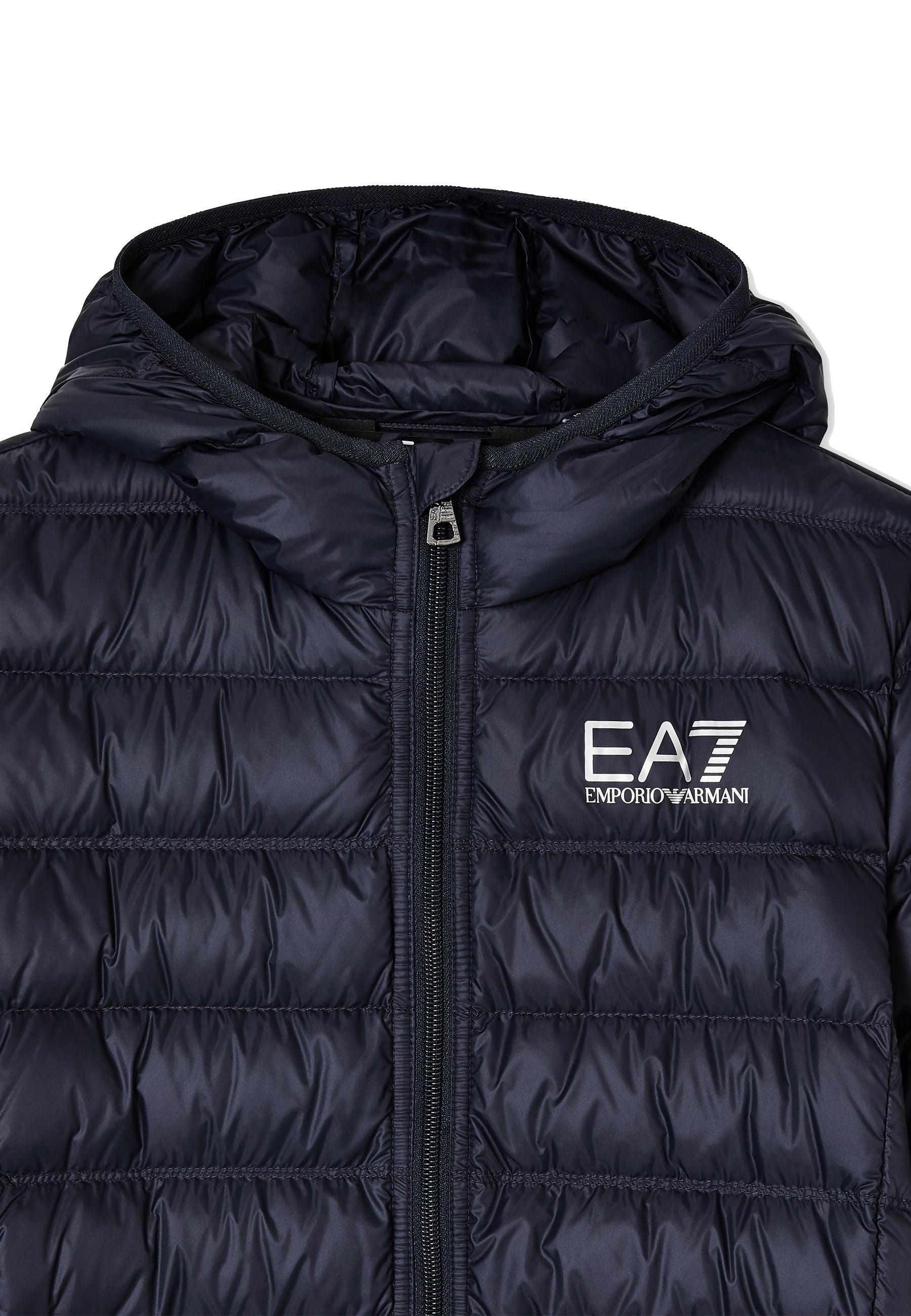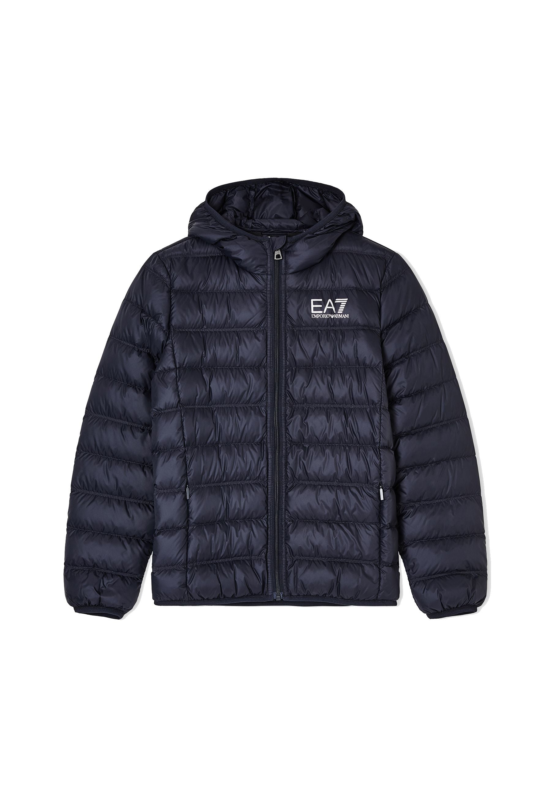 Giubbino Leggero piumino EA7 Emporio Armani per bambini un capo esclusivo elegante e raffinato realizzato con imbottitura in piuma d’oca e tessuto tecnico per offrire calore morbidezza e comfort eccezionali Cappuccio fisso chiusura frontale con zip e due tasche laterali rendono il modello pratico e funzionale mentre il logo EA7 a contrasto impreziosisce lo stile Il piumino è packable e riponibile nella sua dust bag rendendolo versatile e comodo per ogni occasione Distribuito da Bimbivip partner storico affidabile e riconosciuto nel panorama europeo dell’e-commerce e retail Bimbivip garantisce qualità originalità e sicurezza trasformando ogni acquisto in un’esperienza appagante e di prestigio per tutta la famiglia