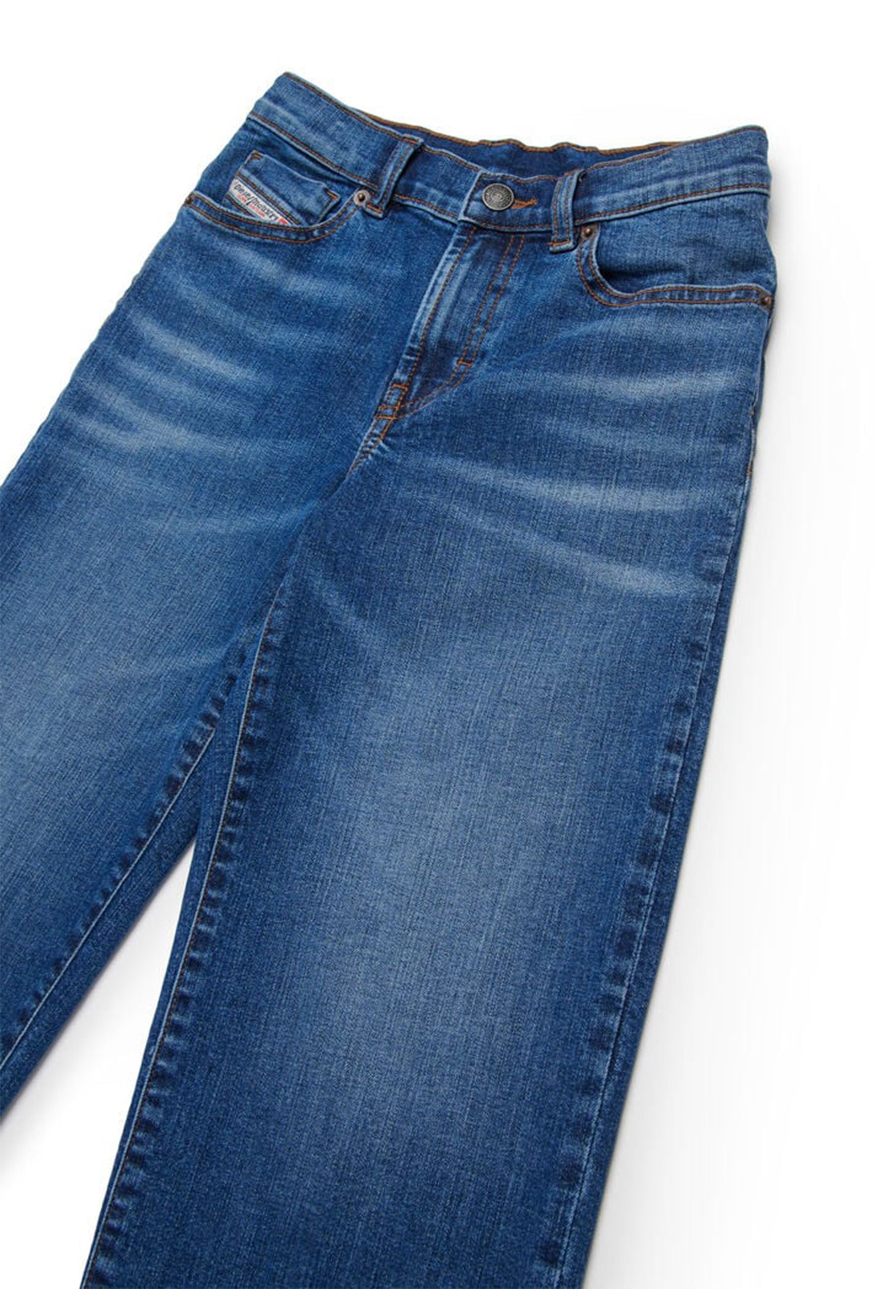 Jeans a cinque tasche dal fit flare e attitudine street a vita media realizzati in pregiato denim blu chiaro con sfumature naturali baffature autentiche e cuciture a contrasto cromatico dettagli di stile come abrasioni rammendate e logo D ricamato sulla tasca posteriore con vita regolabile e chiusura con bottone e zip un capo esclusivo distribuito da Bimbivip partner storico affidabile e riconosciuto nel panorama europeo punto di riferimento per famiglie alla ricerca di qualità originalità e prestigio garantendo un’esperienza d’acquisto sicura appagante e unica