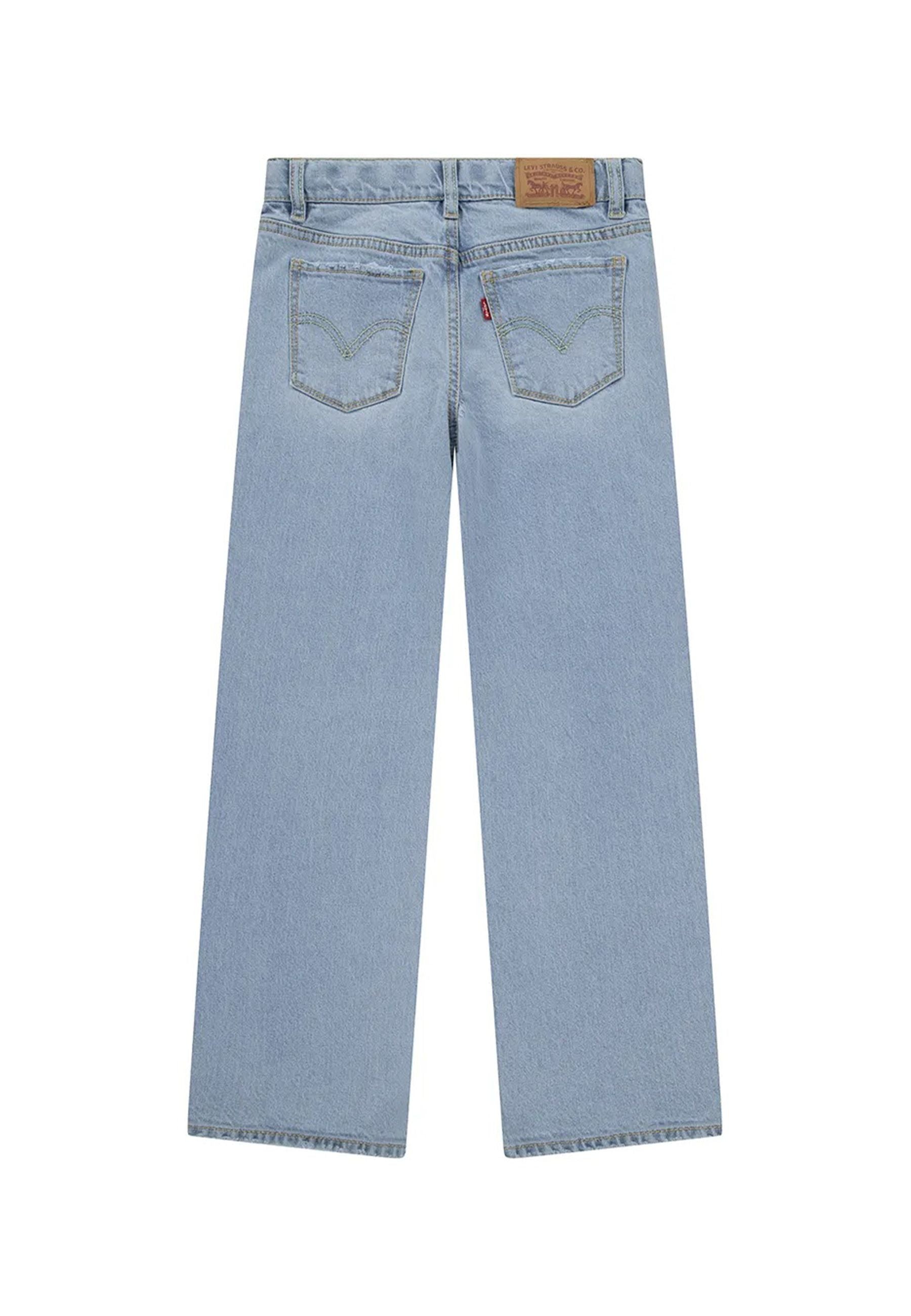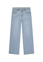 Wide leg fit jeans for girls with a regular waist made of comfortable, slightly elastic denim. Loose fit on the leg. Zip and button closure. Waistband with internal adjustment. Please note: approximately 10% of the models have a red label without a logo but with an international registered trademark symbol. Exclusive product distributed by Bimbivip, a historic, reliable partner in Europe for families looking for quality, originality, and the guarantee of prestigious brands. A safe, satisfying, and fulfilling shopping experience.