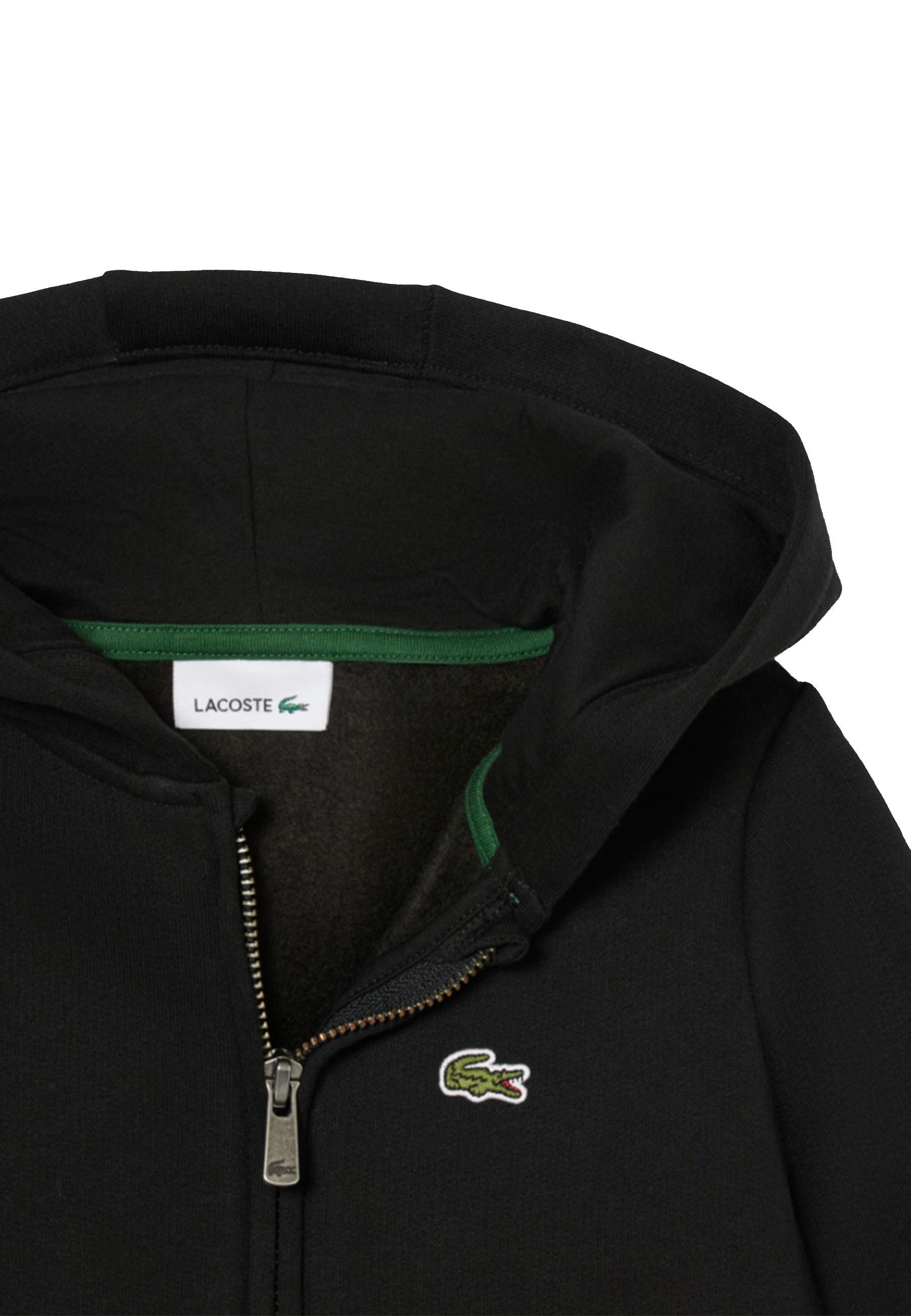 Lacoste Felpa Nera con Cappuccio e Zip