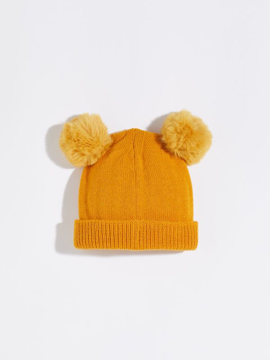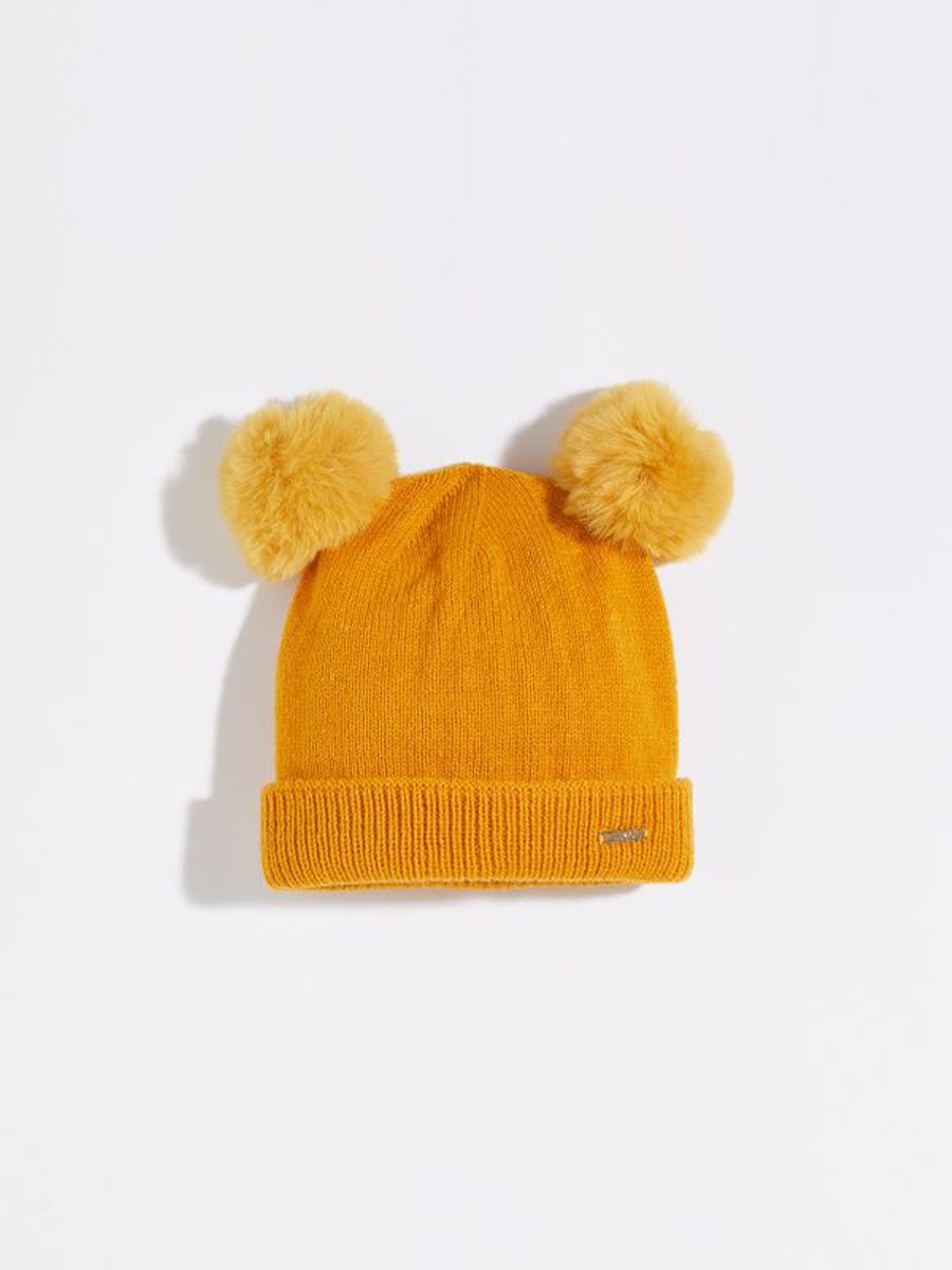Plain hat in soft, wide-ribbed viscose with a maxi pom pom. Cuffed hem and gold-tone metal logo plaque. Fitting instructions: Size S 54-55 cm, Size M 56-57 cm, Size L 58-59 cm.