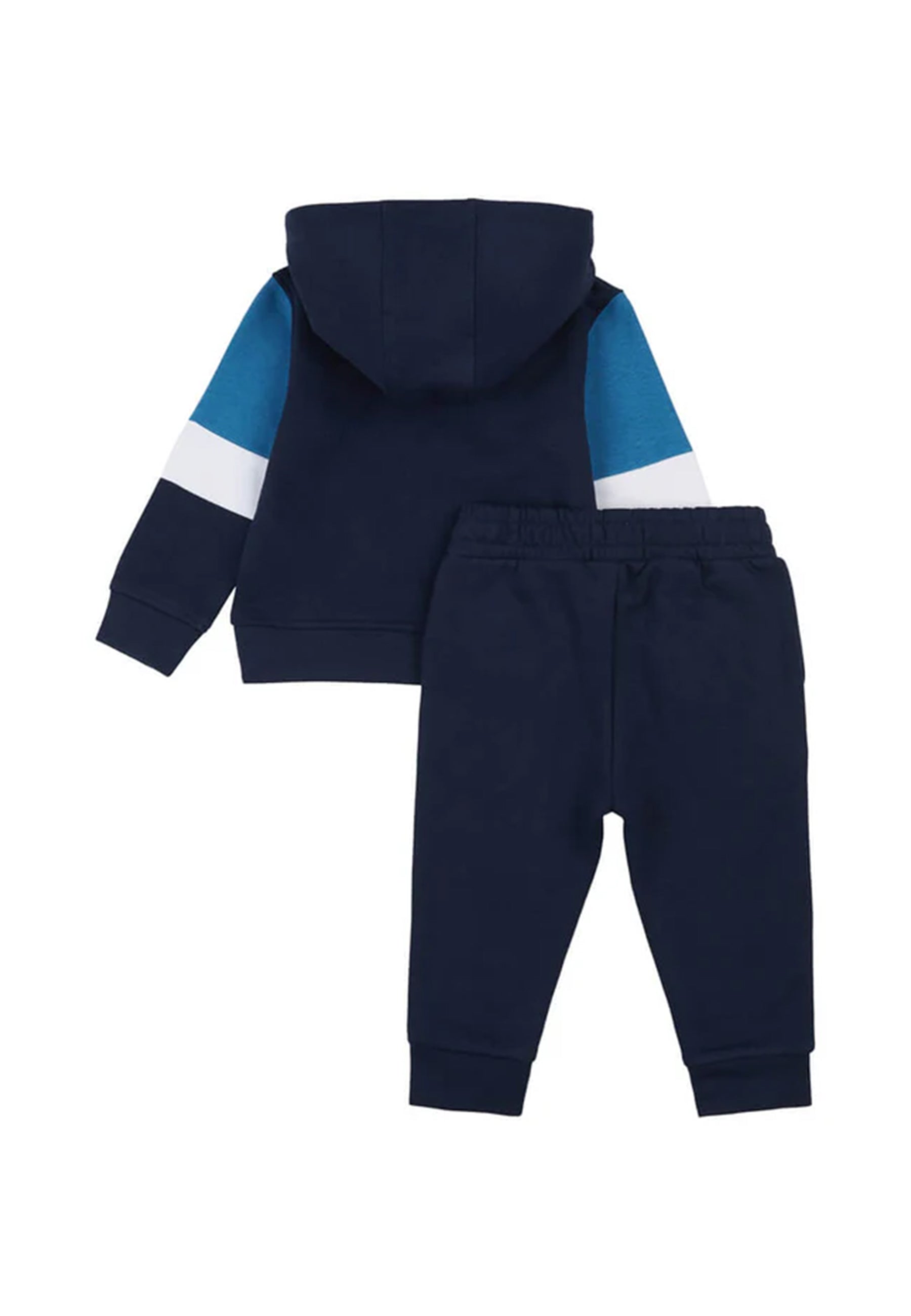 Tracksuit consisting of a contrasting color Macro Logo All-over sweatshirt, full zip and hood. Practical pockets at the waist and mini logo embroidered on the heart. Elasticated cuffs and waist. Solid color sporty jogging with elastic waist and mini logo embroidery on the side.