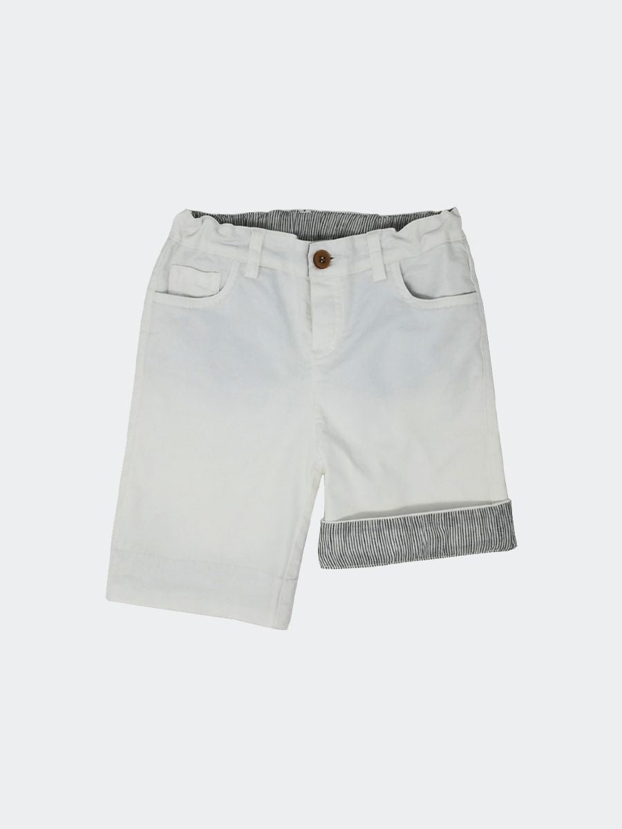 Bermuda modello casual con bottone in vita e 5 tasche. Interno rigato. sottoposto ad un particolare trattamento. Le tinture artigianali rendono l'articolo unico. Ogni particolarità dei tessuti di Zhoe e Tobiah è da ritenersi un valore aggiunto per rendere unico il bimbo o la bimba che lo indossa