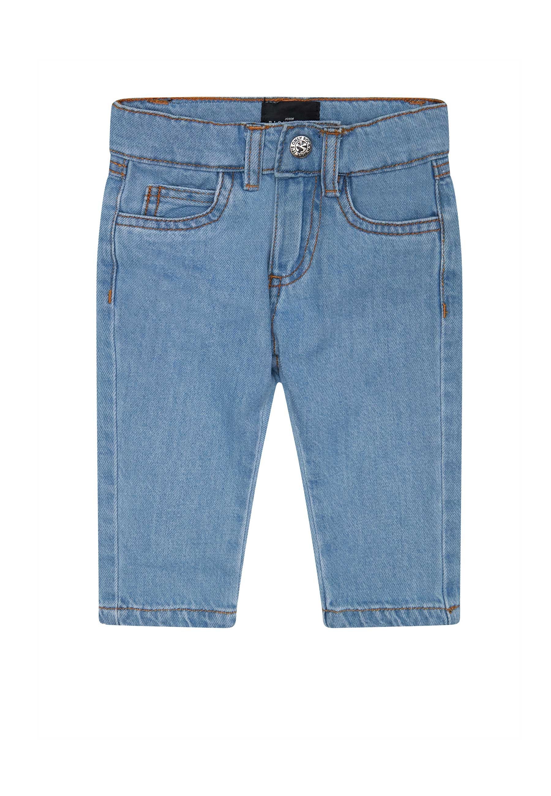 Jeans tinta unita azzurro per neonato realizzati in cotone morbido e resistente design elegante e confortevole elastico in vita pratico e sicuro stile raffinato e contemporaneo perfetto per la moda bimba autunno inverno distribuito da Bimbivip partner storico affidabile e riconosciuto nel panorama europeo punto di riferimento per famiglie in cerca di qualità originalità e marchi prestigiosi che garantiscono un’esperienza d’acquisto sicura soddisfacente e appagante