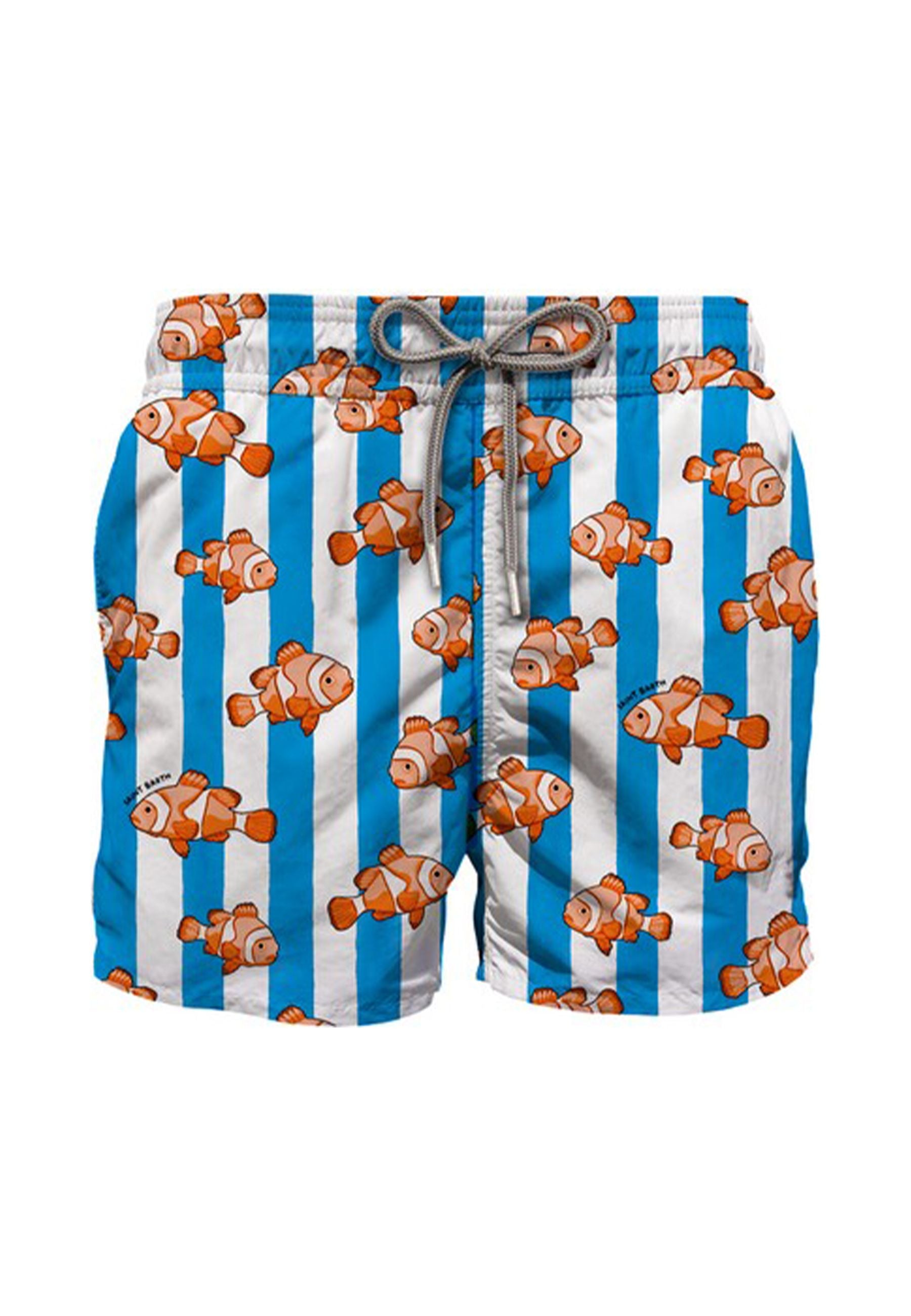 These children's swimsuits offer an impeccable fit thanks to their balanced mid-length, comfortable adjustable drawstring, and ergonomic inner briefs designed for comfort and freedom of movement. The practical side pockets and back pocket with Velcro closure combine functionality and style, while the variety of patterns and solid colors allows for the perfect look for every need. Mc2 St. Barth embodies the casual elegance and holiday charm of an exclusive brand, expressing refined style and summery lightness. Its pieces, synonymous with quality and sophistication, evoke sunny atmospheres and a carefree elegance, perfect for those who want to stand out with thoughtful details and premium materials. Bimbivip, a prestigious partner of major brands, is a consolidated reference in the children's fashion scene with an online store and stores throughout Europe. Its careful selection guarantees quality, refinement, and maximum customer satisfaction, offering only the best of current trends. To maintain the beauty and durability of Mc2 St. Barth garments, it is essential to follow the care instructions: avoid dry cleaning and tumble drying, do not bleach, and iron at a maximum temperature of 110°C without steam to prevent irreversible damage. We also recommend using a color-safe detergent without bleach to preserve the brilliance of the fabrics and prolong the life of the garment.