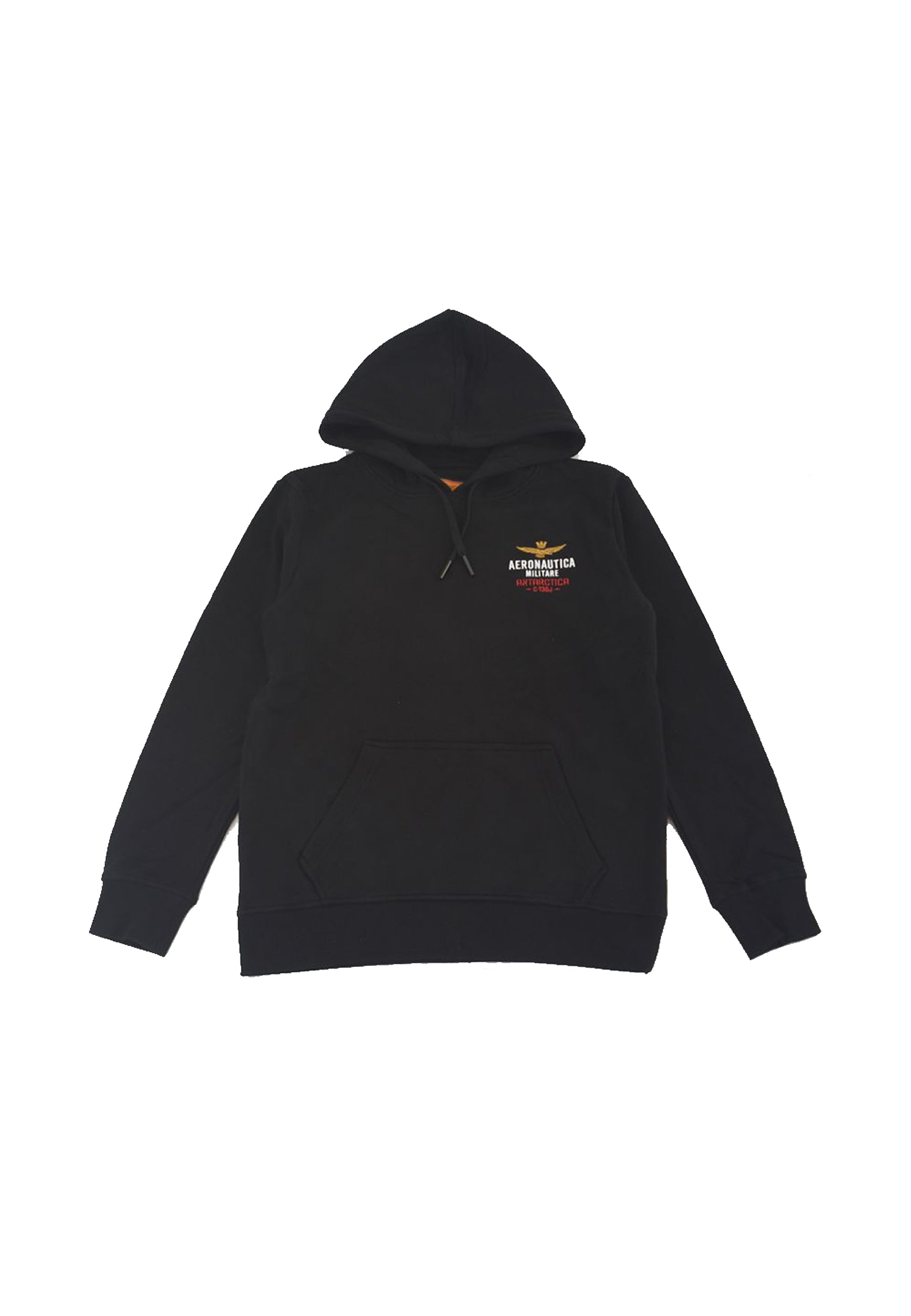 Felpa modello Hoodie regoalbile da cordino con ricamo AM C130J lato cuore. Polsi e fondo a costine