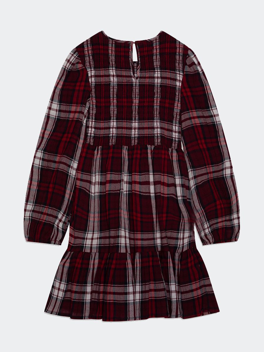 Crew neck dress with long sleeves embroidered on the wrist. Punto Milano model with finished open bottom. Back zip closure