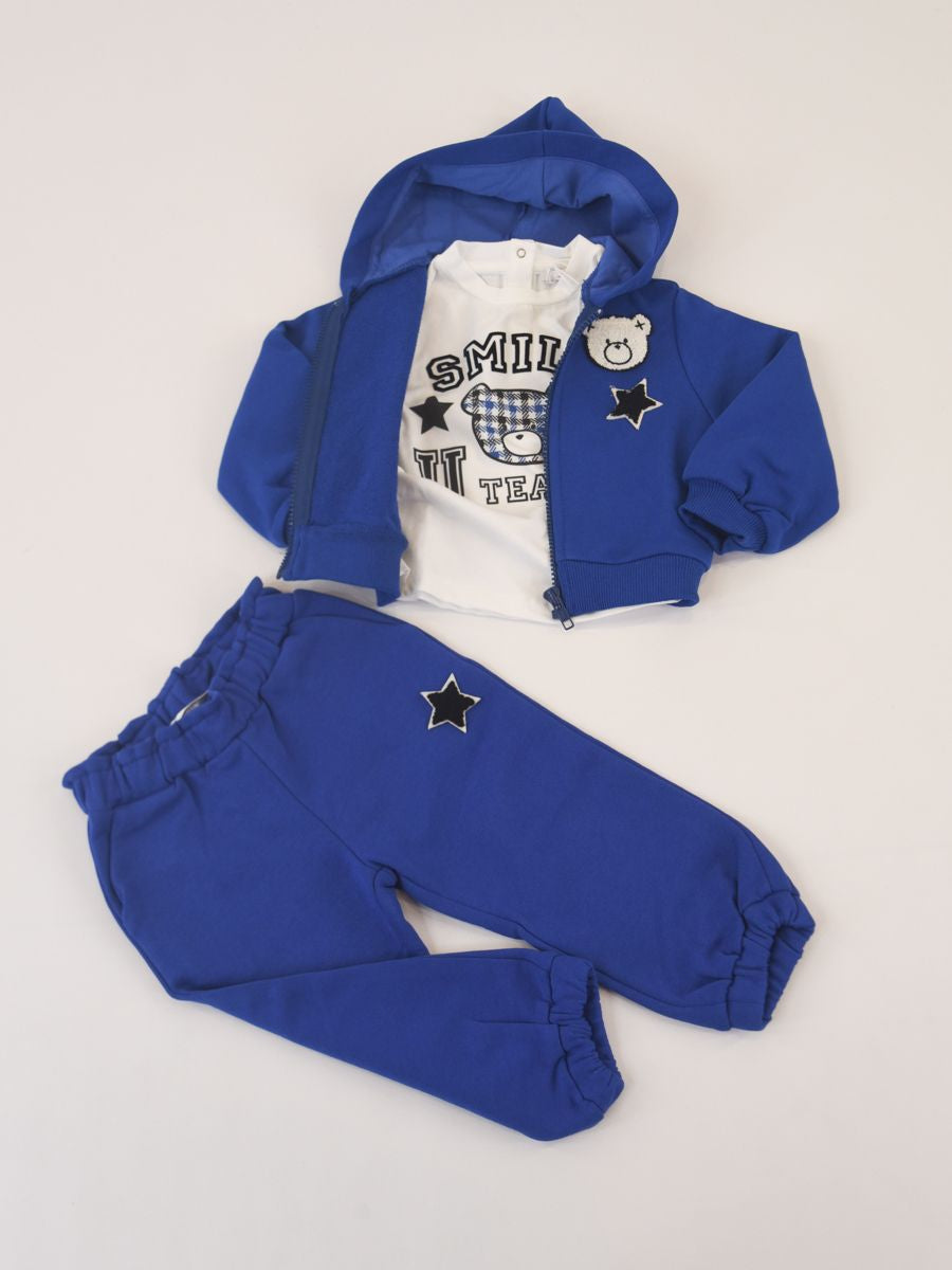 Pantalone in morbido cotone con patch stella sulla gamba. Tasche laterali a filo. Girovita ad elastico alto Capo preferibilmente utilizzabile nelle stagioni primaverili e autunnali LAVARE A 30° IN LAVATRICE - NON STIRARE - NON LAVABILE CON I COLORI CHIARI - NON USARE CANDEGGINA made in ITALIA composizione 100%CO