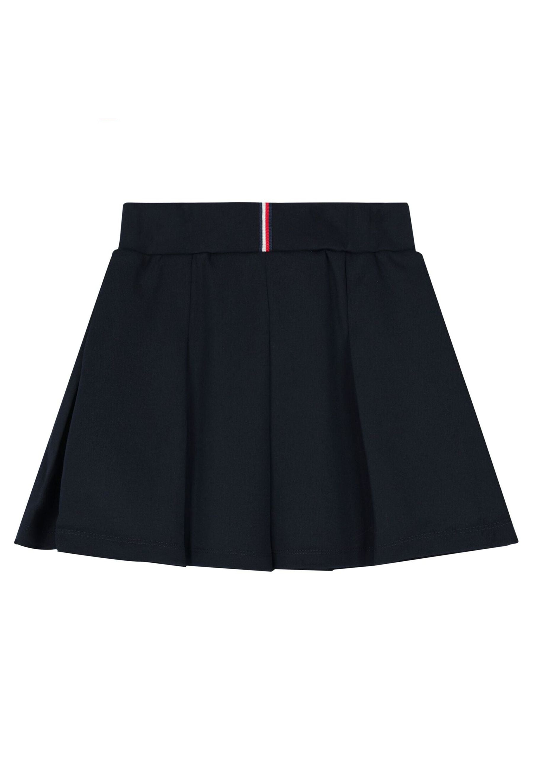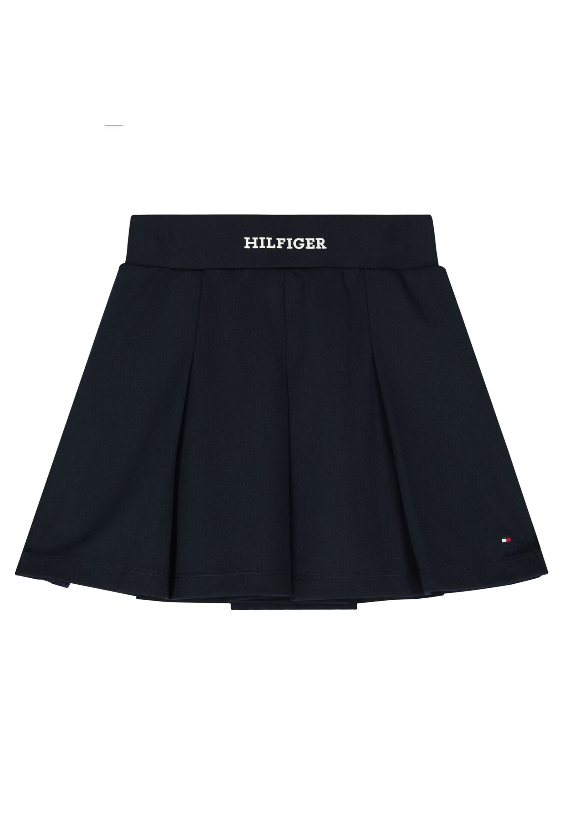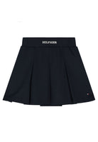 Gonna Mini Tommy Hilfiger Monotype per bambine dal carattere moderno elegante e versatile realizzata in jersey elasticizzato con poliestere e modal sostenibile che assicura comfort morbidezza e libertà di movimento il design plissettato blu navy valorizza la silhouette con uno stile ordinato dinamico e attuale la vita elasticizzata con logo Hilfiger a contrasto comunica identità prestigio e riconoscibilità mentre la bandierina ricamata sull orlo conferma cura sartoriale e autenticità un capo pratico resistente e di qualità ideale per l uso quotidiano e per occasioni speciali distribuito in esclusiva da Bimbivip partner storico affidabile e autorevole punto di riferimento europeo per famiglie attente a sicurezza originalità e marchi premium garanzia di un acquisto consapevole sicuro e di alto valore percepito