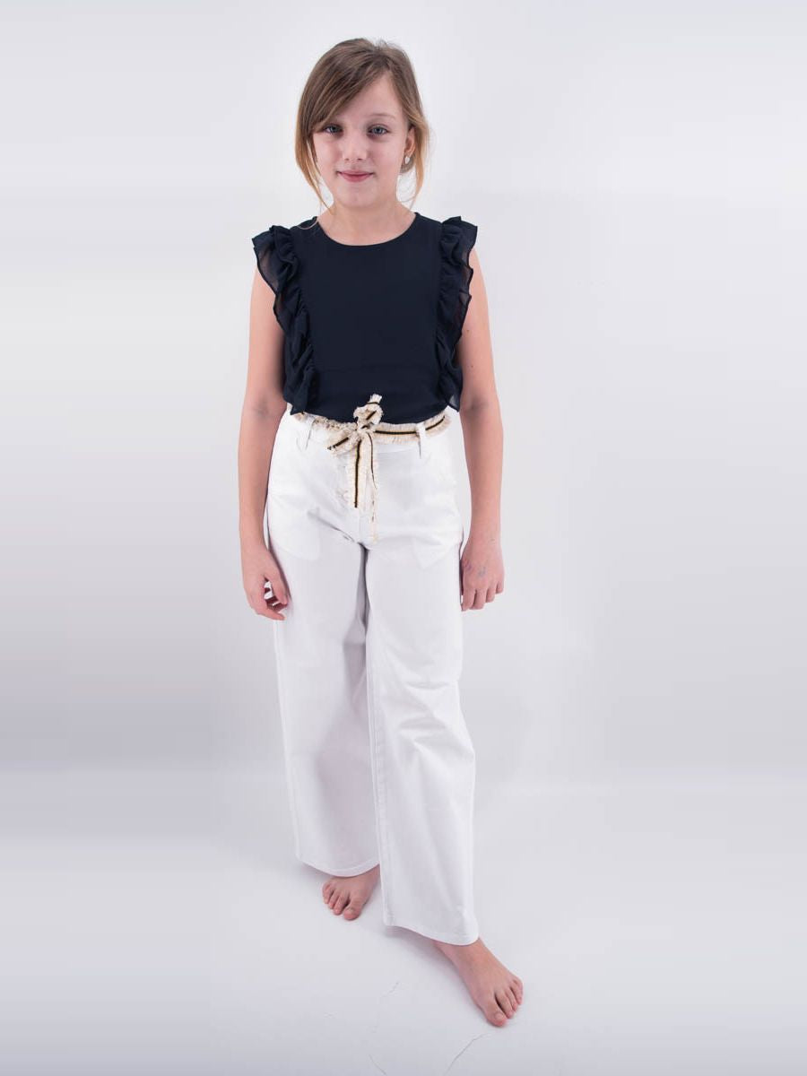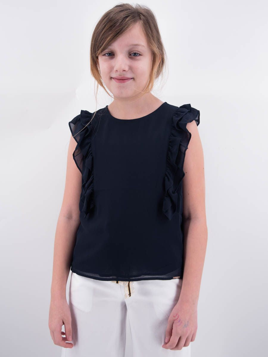 Sleeveless T-shirt with rouge on the shoulder. Simplicity that contains elegance