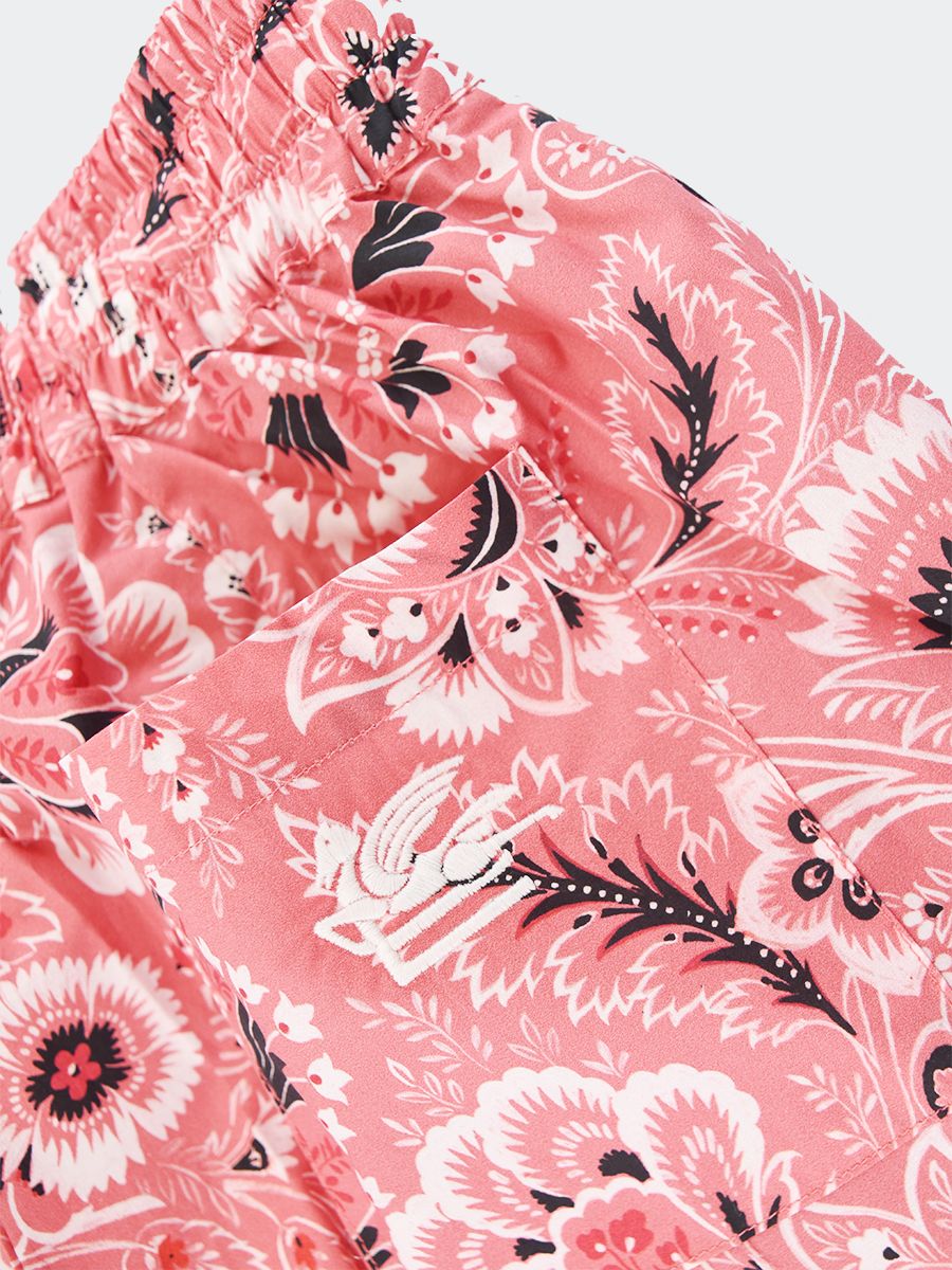 Bermuda shorts with a soft cotton sky that wraps this garment with an elegant elasticity at the waist to ensure maximum comfort. The perfectly integrated side pockets offer practicality while those on the back add a touch of functional style. The paisley decoration gives a touch of refined originality making it a one-of-a-kind garment
