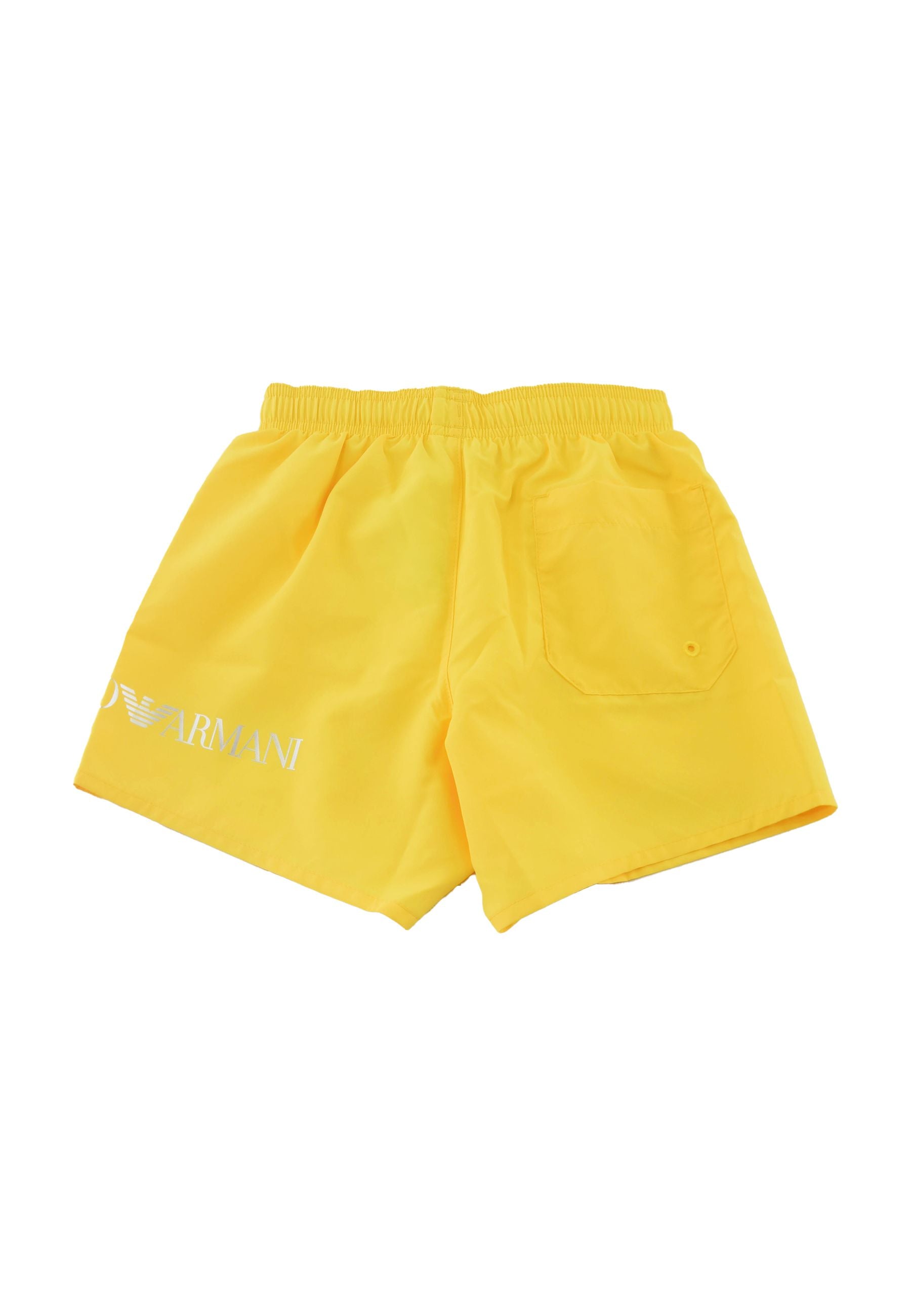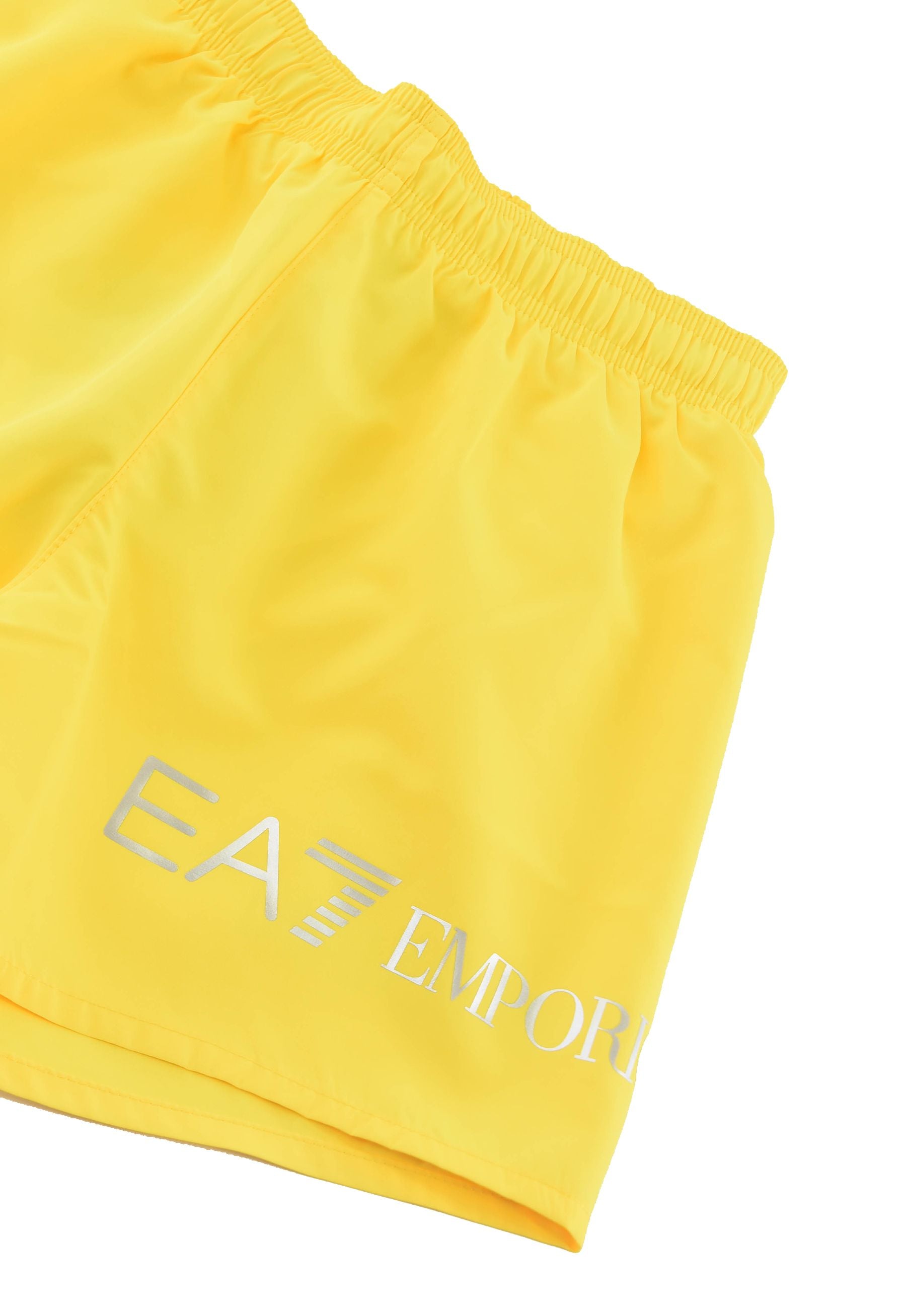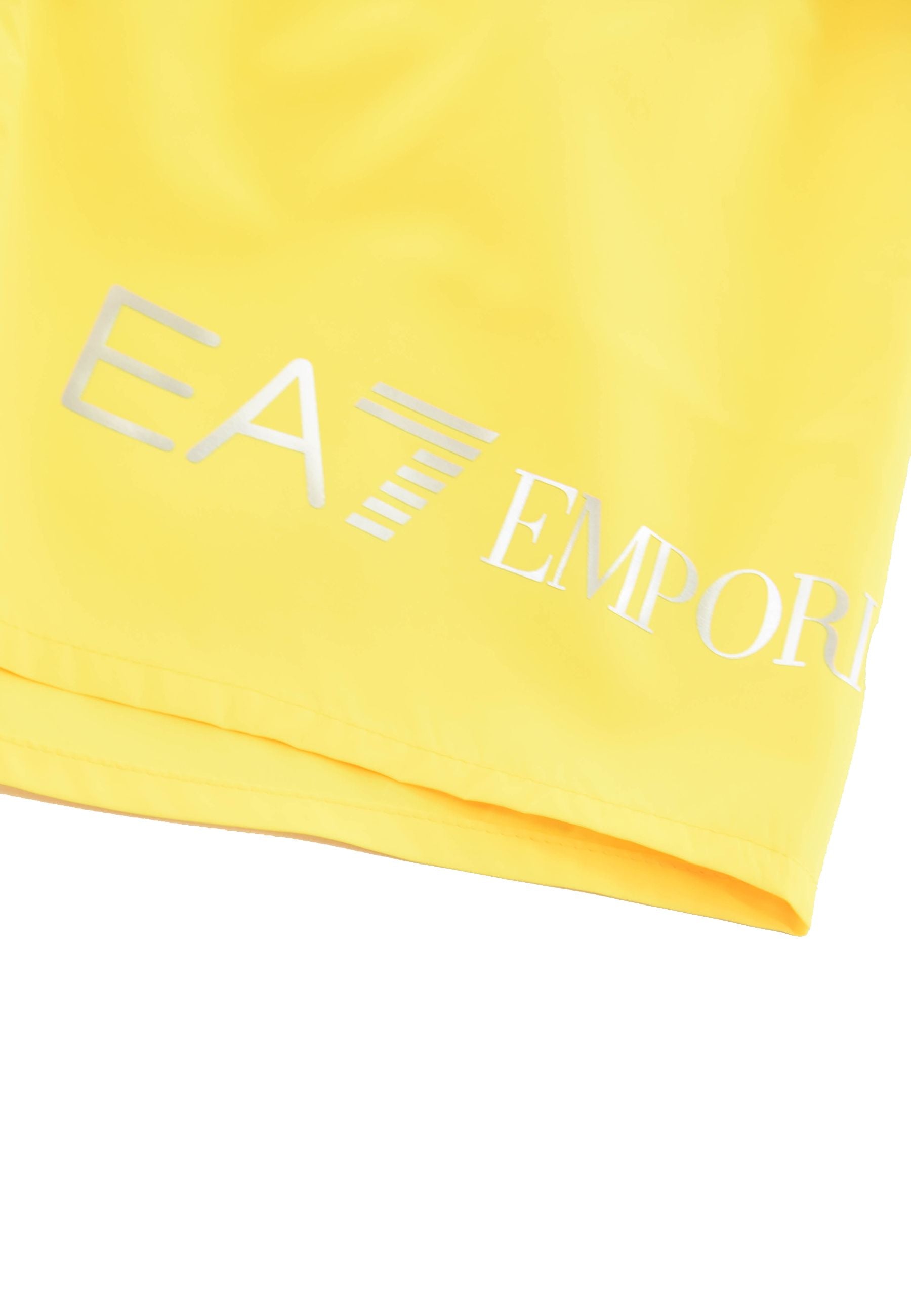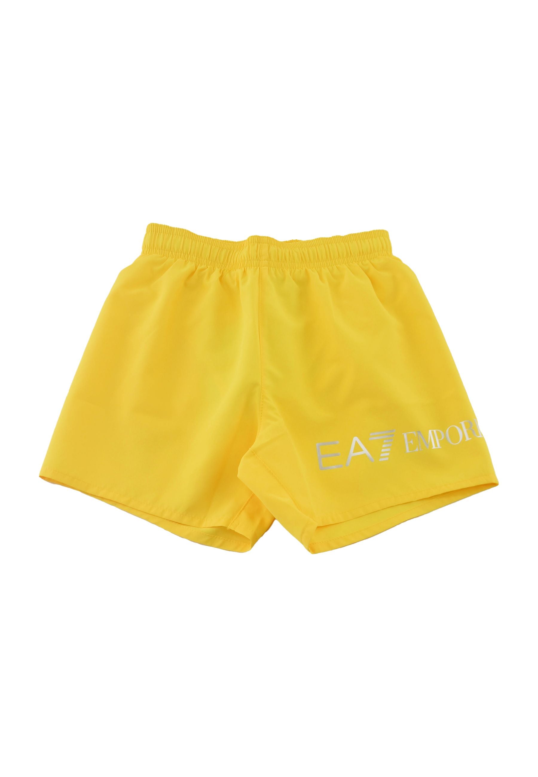 Solid-color boxer shorts with an elastic drawstring waist. Contrasting EA7 logo on the leg. Back pocket.