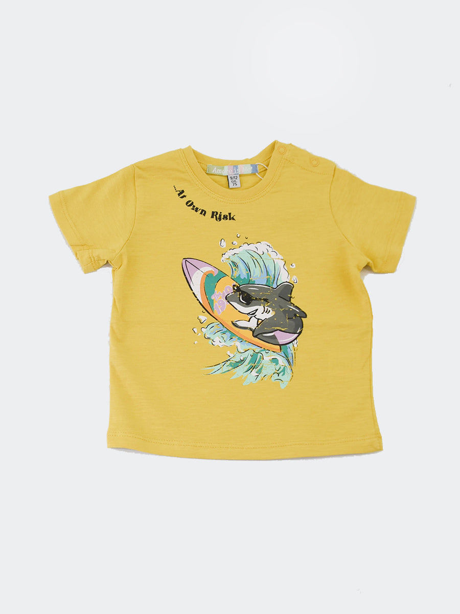 Crew neck short sleeve T-shirt with front print Shark Surf