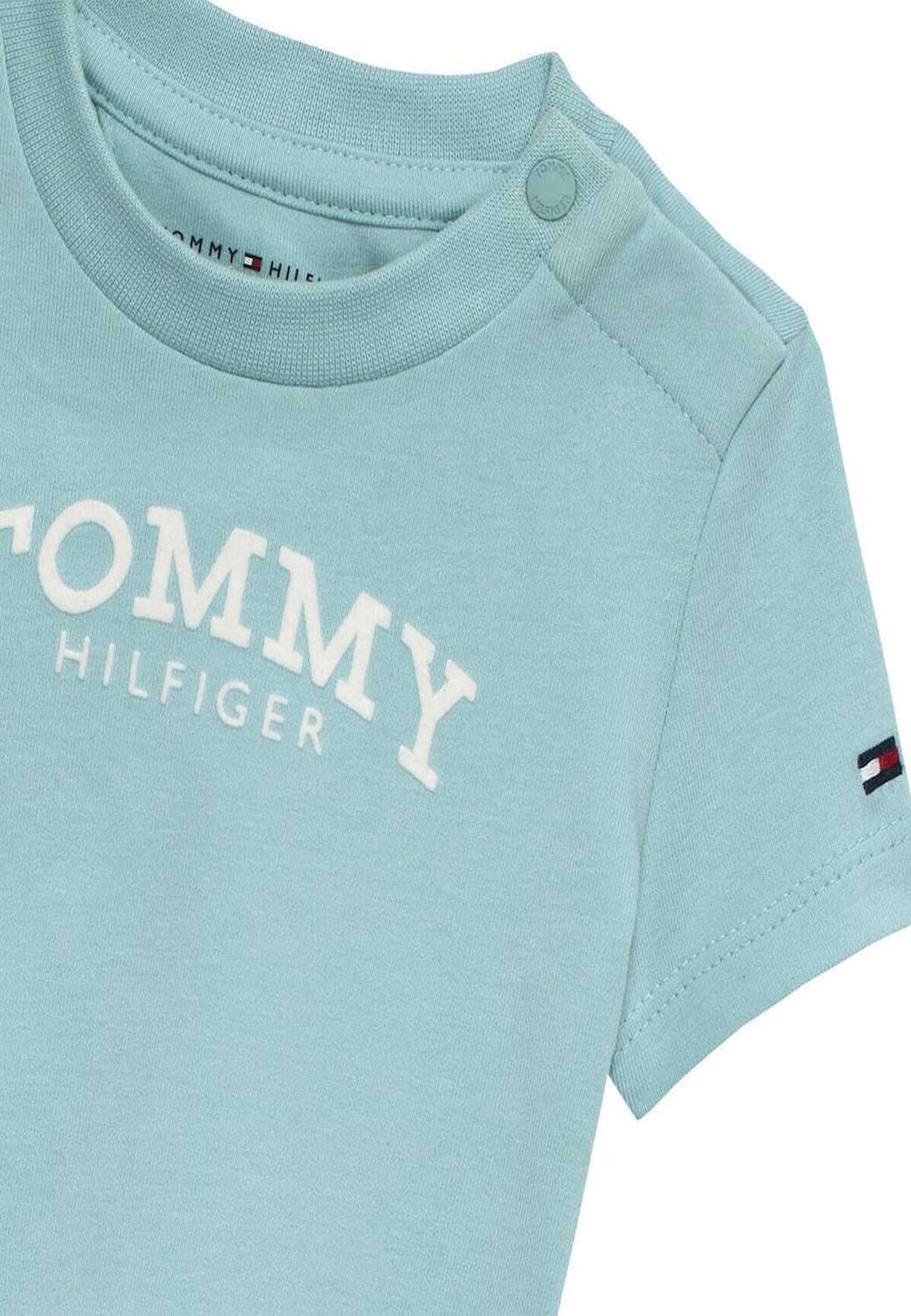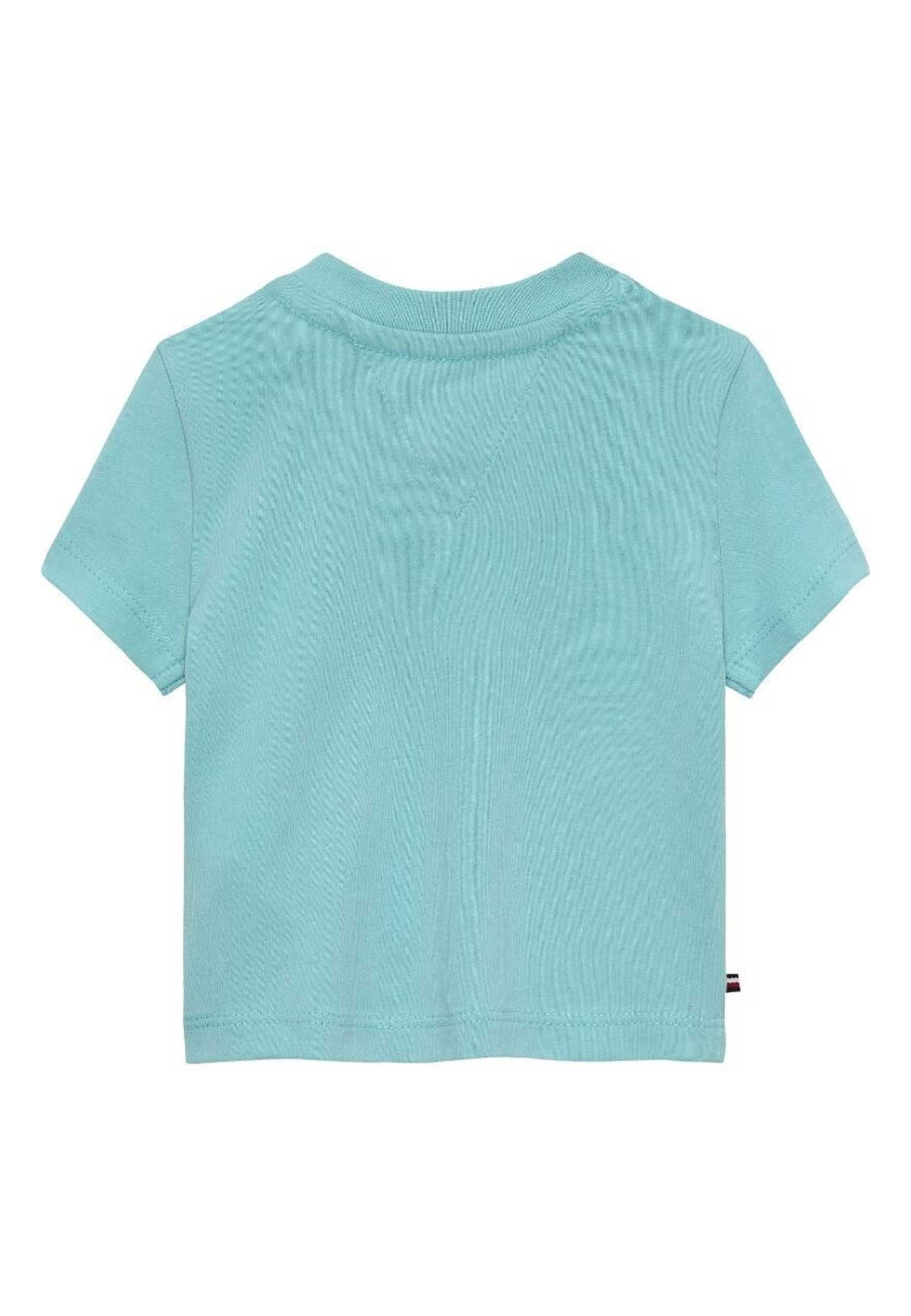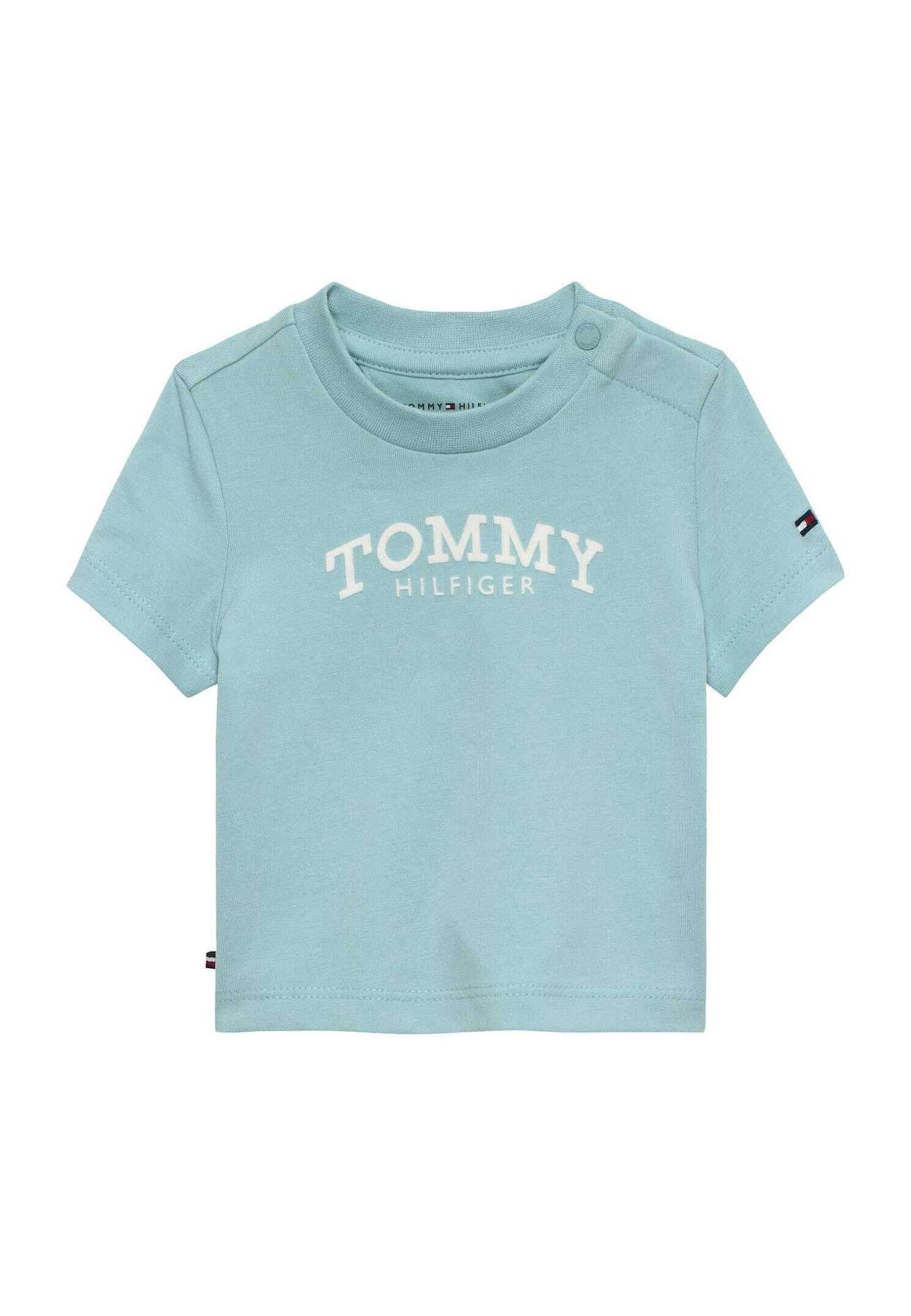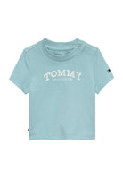 T-shirt per neonati Tommy Hilfiger esclusiva distribuita da Bimbivip partner storico affidabile e autorevole nel panorama europeo ecommerce e retail punto di riferimento per le famiglie che cercano qualità autenticità e marchi prestigiosi Bimbivip garantisce un'esperienza di acquisto sicura trasparente e gratificante con cura nella selezione attenzione al cliente e garanzia di originalità Il capo realizzato in maglia fine elasticizzata unisce comfort e morbidezza grazie all'alta percentuale di cotone e all'uso di fibre rigenerate sostenibili Taglio dritto per libertà di movimento girocollo classico rotondo chiusura a scatto corta per praticità e ventilazione cuciture piatte che proteggono la pelle rendono questa T-shirt un capo confortevole resistente e di valore perfetto per neonati attenti alla qualità e allo stile