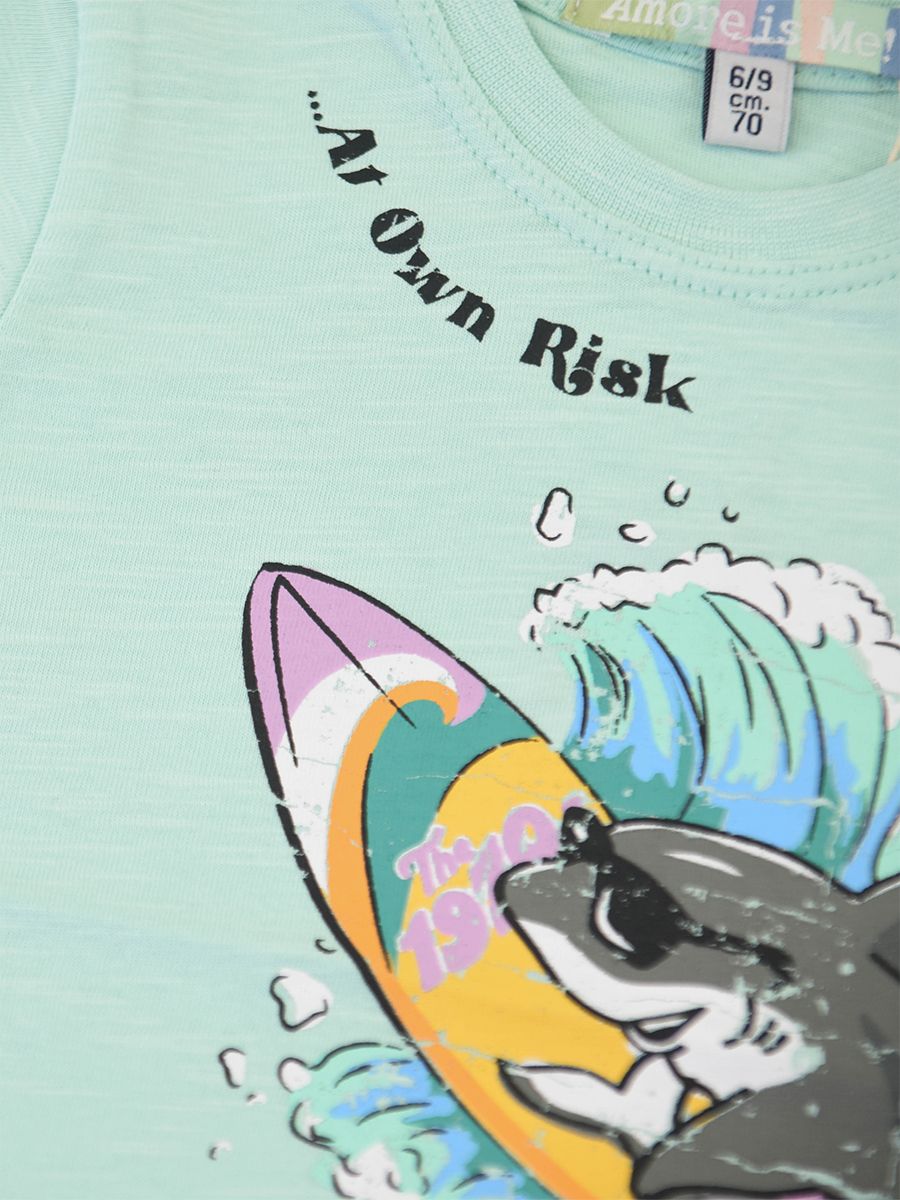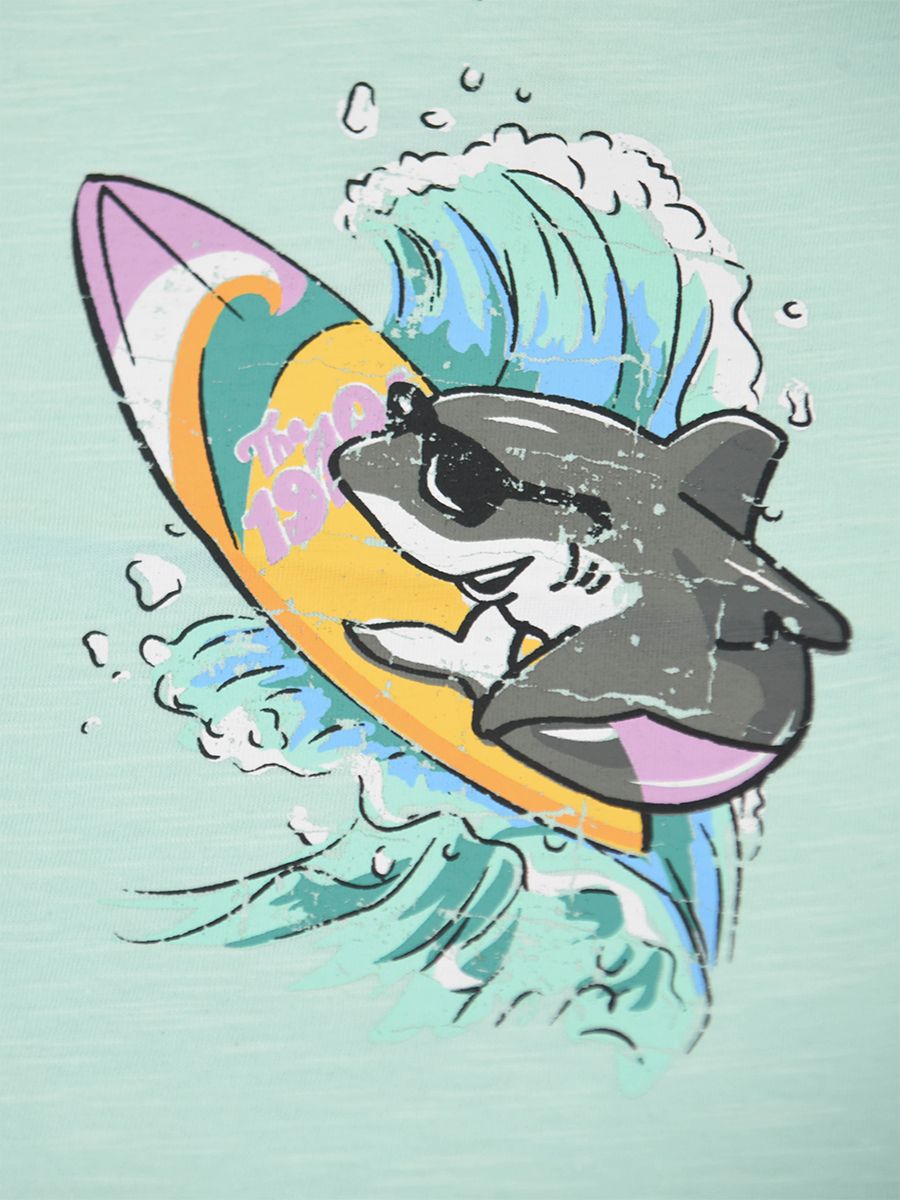 Crew neck short sleeve T-shirt with front print Shark Surf