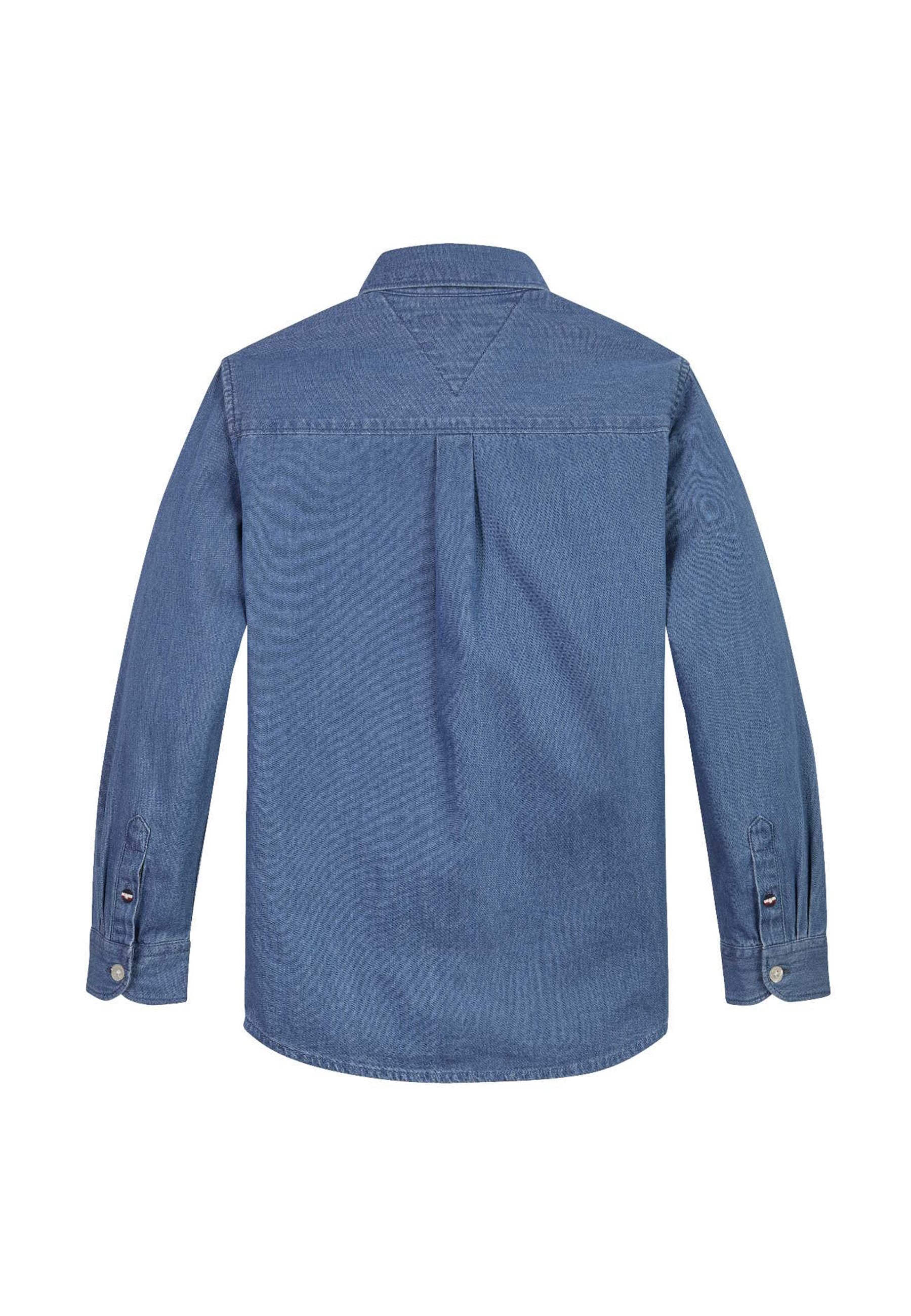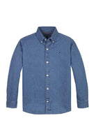 Regular fit shirt with long sleeves in soft cotton Chambray Botton Down with embroidery on the heart side and flag plate on the bottom