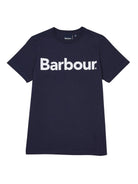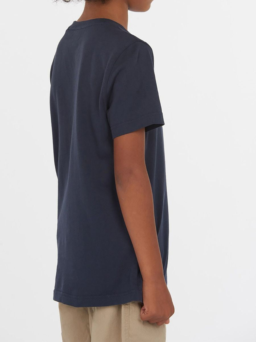 Iconic crew neck short sleeve T-shirt with brand lettering printed on the front. Ribbed collar and sleeve edges.