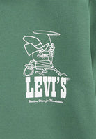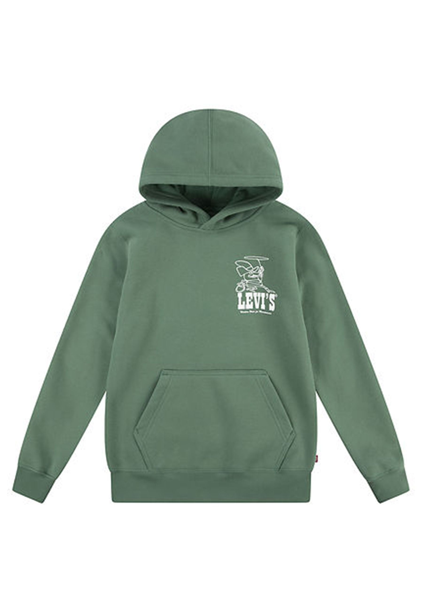Levis Green Sweatshirt is a garment that conveys an idea of comfort and timeless style characterized by a unique energy. Its design features a print on the left side depicting a cowboy with a lasso, evoking the image of the Wild West with a touch of classicism. The fixed hood lined in cotton adds an element of practicality and comfort while the wide ribbed edges give the garment a modern yet relaxed line. The kangaroo pocket on the front offers functionality and convenience, completing a look that mixes aesthetics and comfort. The interior of the sweatshirt is in brushed cotton that is soft to the touch and pleasant on the skin while the composition of the fabric 63% organic cotton and 37% polyester reflects a commitment to the environment without sacrificing resistance and quality. For the care of the product it is important to carefully follow the instructions on the labels or on the website. Do not dry clean, avoid using the rotary drum dryer and do not use bleach as it may irreparably damage the fabric. The best advice is to also pay attention to the type of detergent, choosing one specifically for colored garments that does not contain bleach. Finally, iron at a maximum temperature of 110°C, avoiding steam that could compromise the structure of the material. Bimbivip, with its history in the e-commerce sector and in its stores throughout Europe, is a prestigious partner of the big brands, guaranteeing the customer total satisfaction in the purchase and care of their garments. The company stands out for its consolidated experience in guaranteeing high-quality products and impeccable assistance.